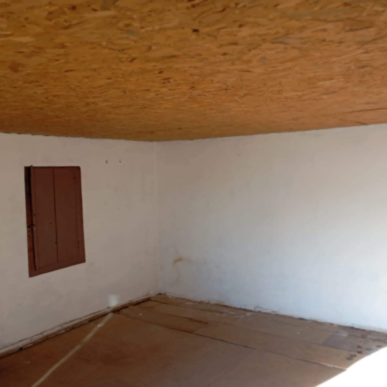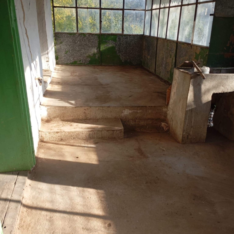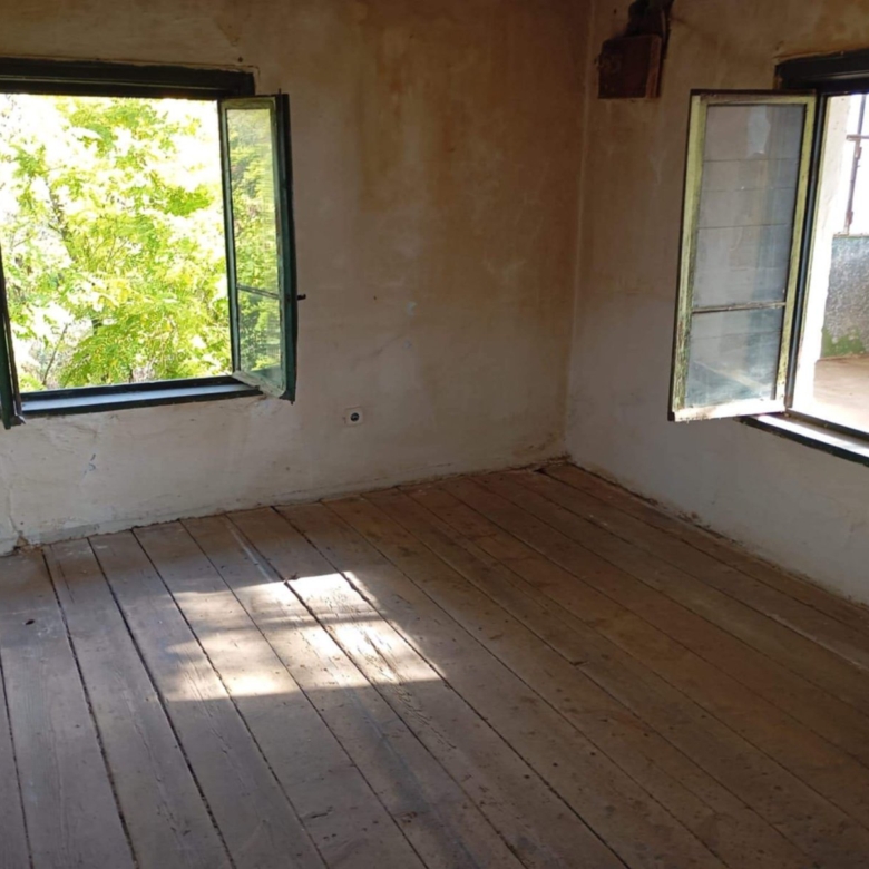 The house is in need of renovation but could make a wonderful home. There are no visible issues with the roof. Some windows have been replaced. The property requires renewal of the interior rooms and new flooring. Electricity and water are available.