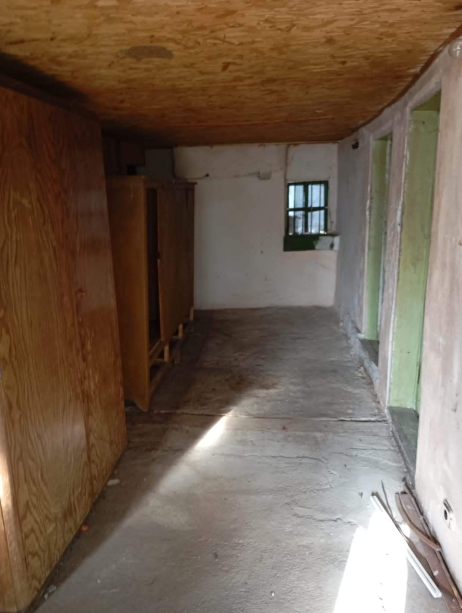 A large hallway and a room used as a cellar. Outside, with a separate entrance, there is another room that serves as a bathroom.