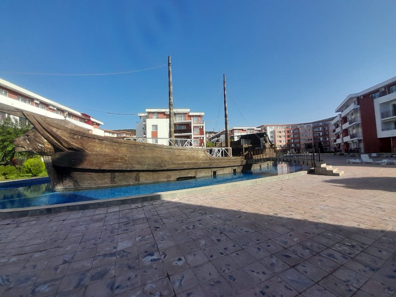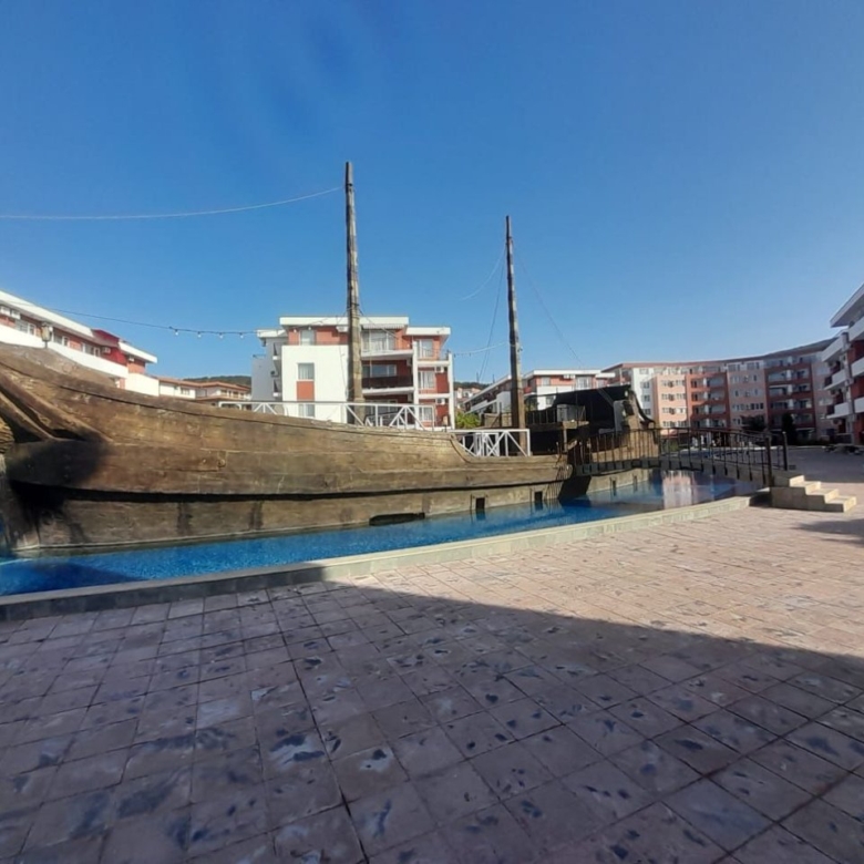 In addition to the magnificent swimming pools and beautiful green areas, there are four children’s playgrounds, fitness, beauty and massage center outdoors, medical center, supermarket, fitness, sauna, pizza restaurant, “Ship – Bar-Restaurant” with panoramic views, free parking for owners and guests, tennis/football court.