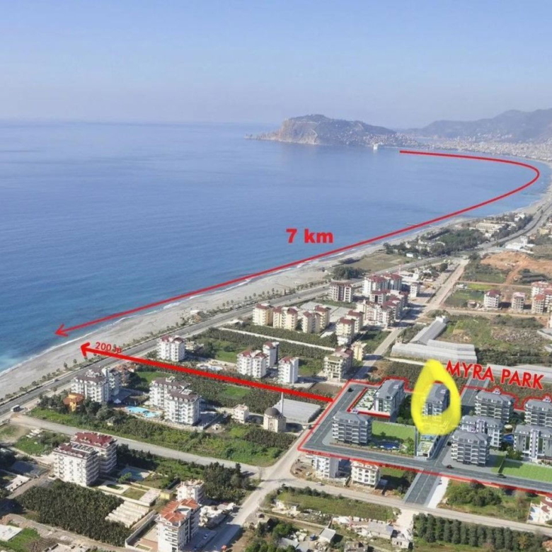 The residence also features landscaped green areas, sports courts, and is located just1 km from Mahmutlar center,12 km from Alanya city, and29 km from Gazipaşa Airport.
