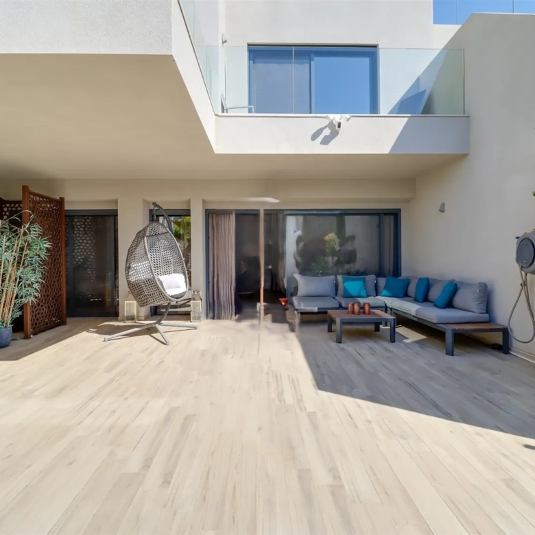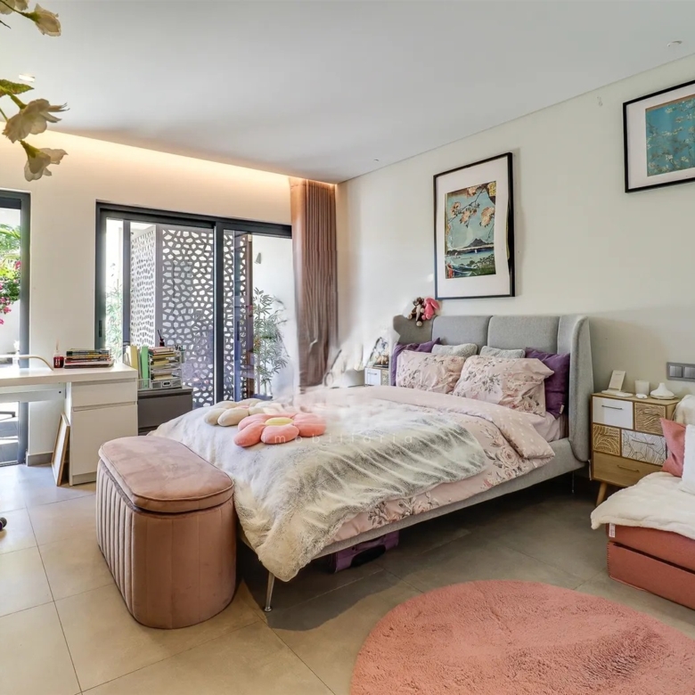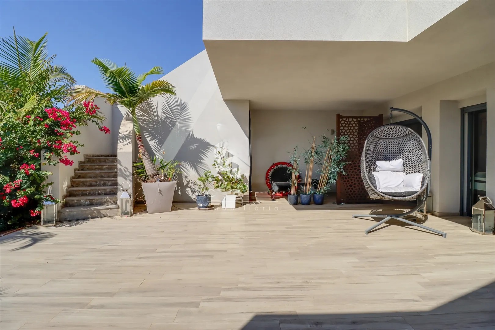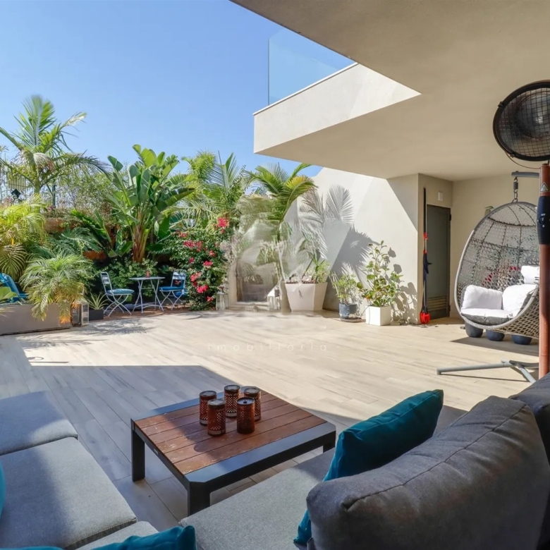 Access to a beautifully landscaped terrace with shaded areas, storage space, and a charming Mediterranean garden provides a peaceful and relaxing atmosphere.