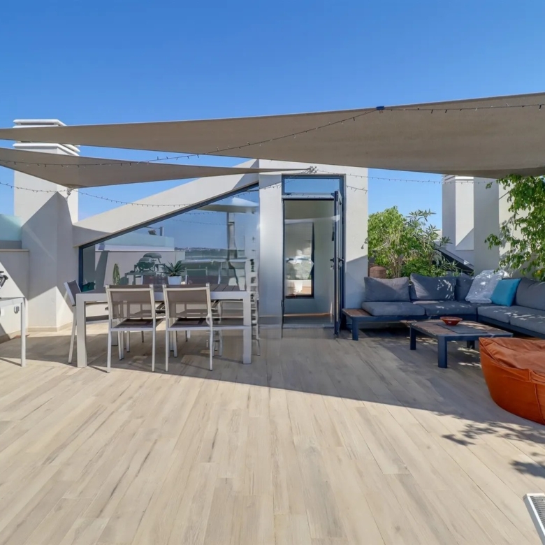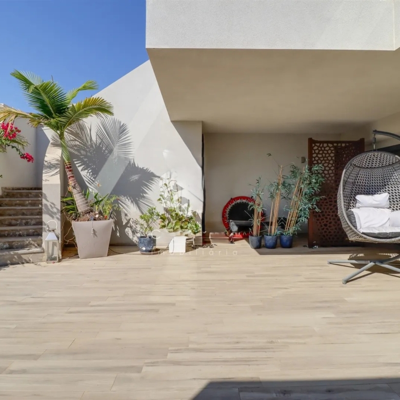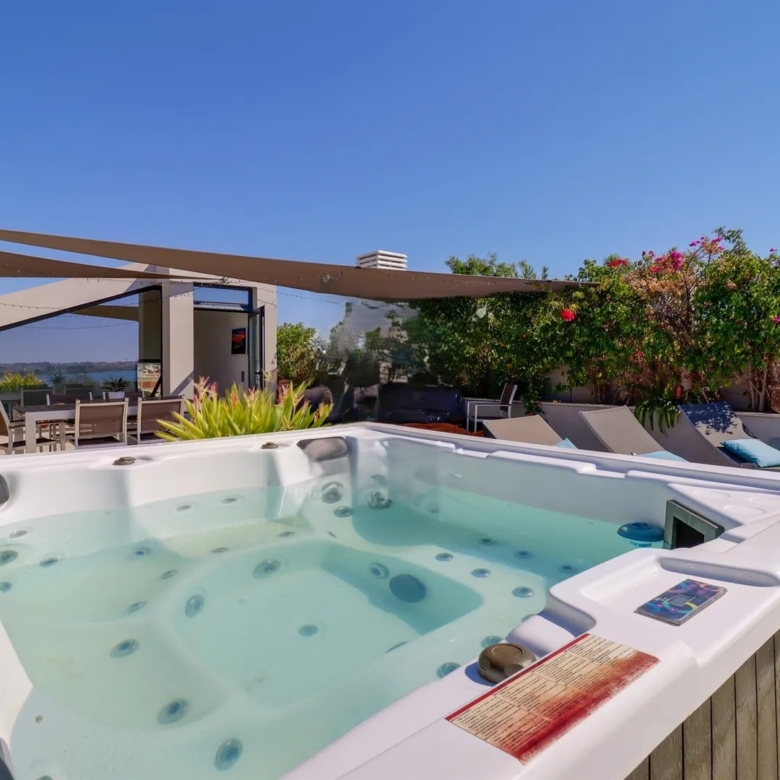 At the top, a panoramic rooftop terrace with a private jacuzzi invites you to enjoy unique moments of relaxation while taking in the stunning sunsets.