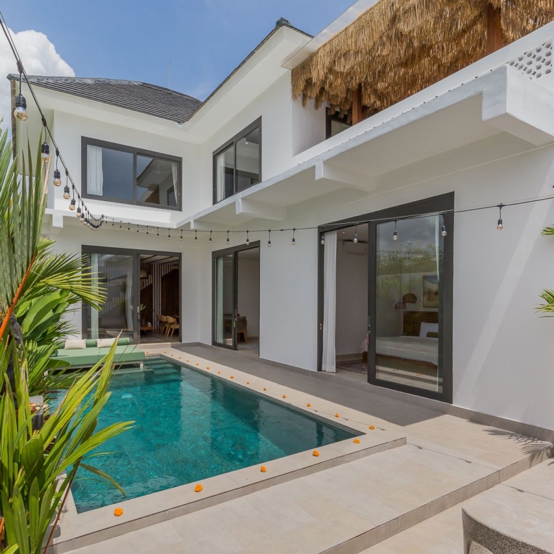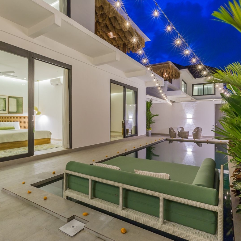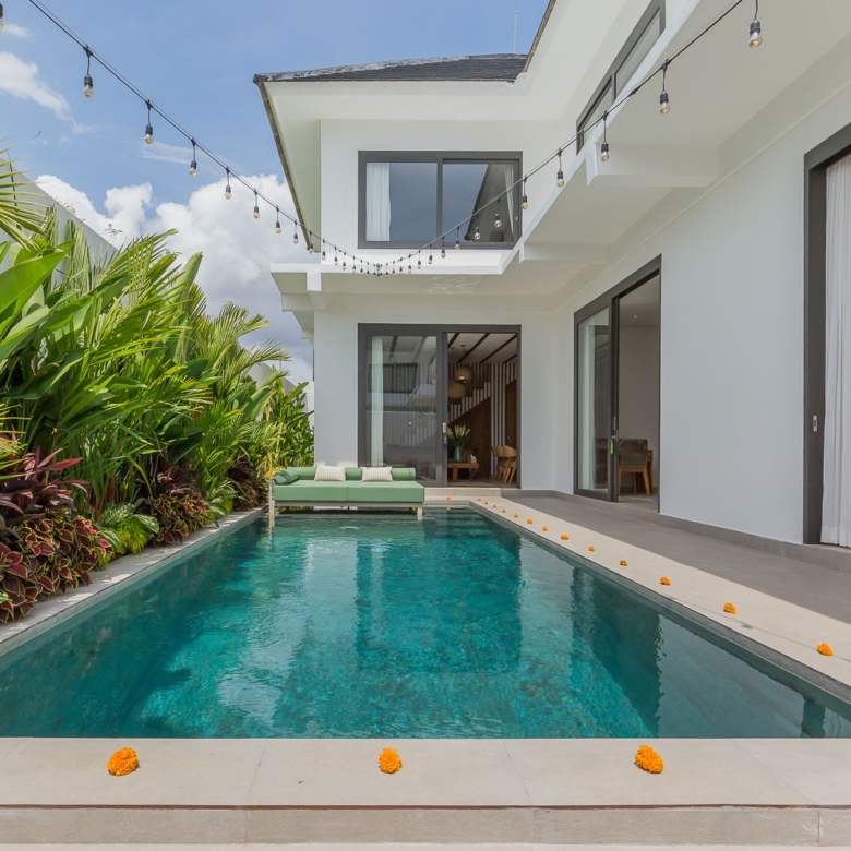 Set in Umalas’ most coveted area, this jade-accented designer villa blends sophistication and comfort with high-end materials and tailored interiors. Featuring three spacious bedrooms, rooftop sunset views, and a private garden pool, it delivers both lifestyle and income potential. Ideal for investors seeking a high-ROI villa near Berawa and Finns Beach Club.