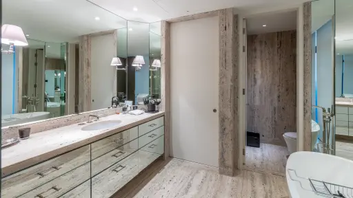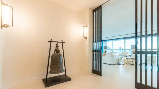 This condominium has been upgraded & remodelled BY THE ARCHITECT ALBANO DAMINATO, FOUNDER OF STUDIO DAMINATOto allow an abundance of open space and living entertainment area, aiming to maximise the vast amounts of light from the floor-to-ceiling glass windows and vaulted ceiling for a loft-type style. This triple aspect corner unit offers spectacular afternoon sun and sunset, which floods through its primary South/West aspect. This dramatic sunset atop the Royal Sports Club & city skyline can be enjoyed in the main living area or the connected L-shaped spacious balcony, which features a new patinated stucco floor.