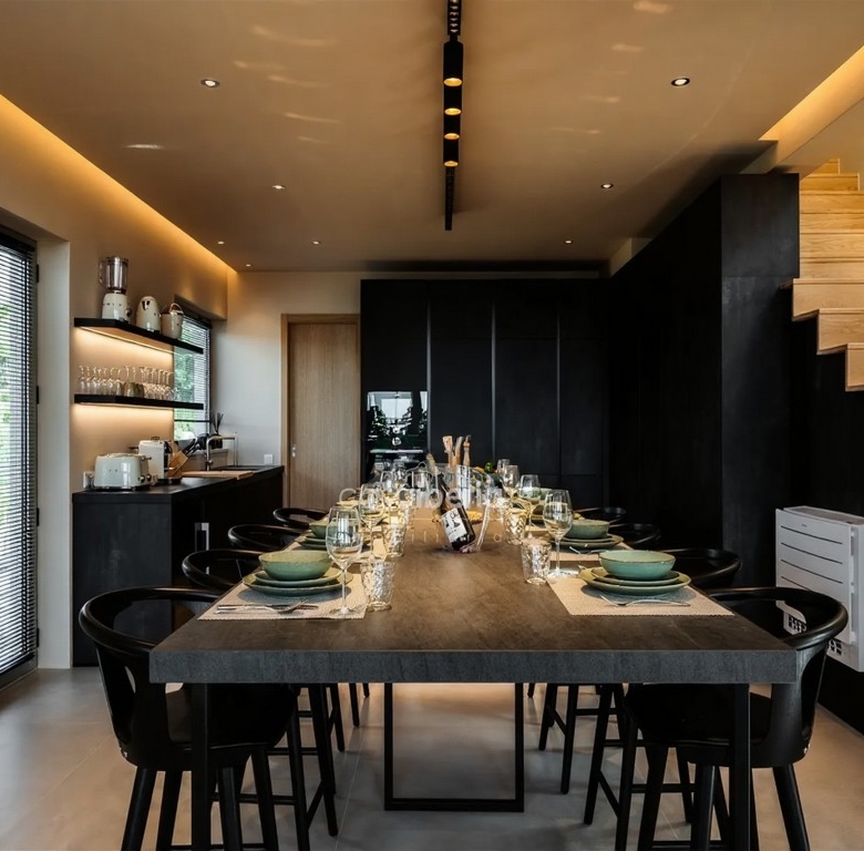 The open kitchen is fully equipped with the latest BOSCH technology.