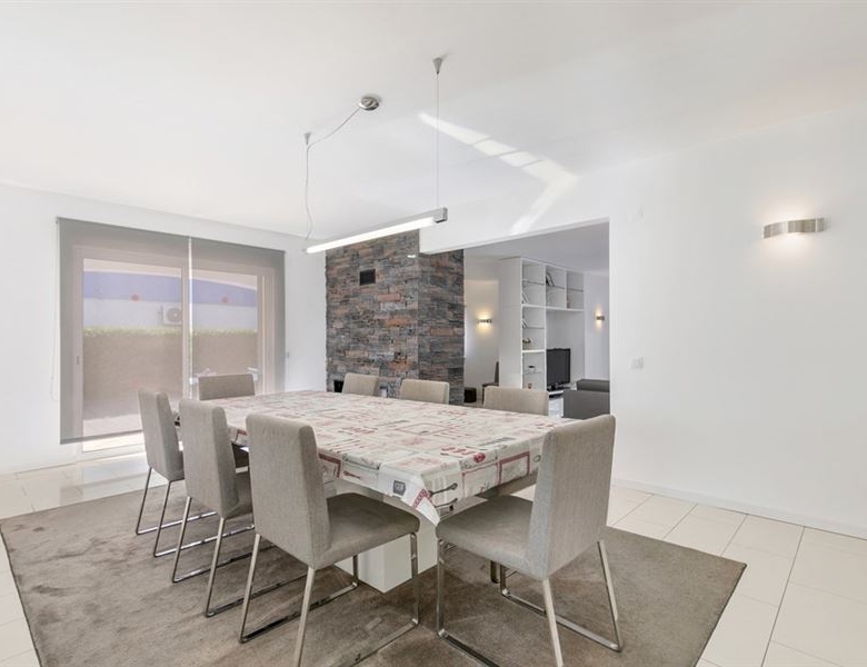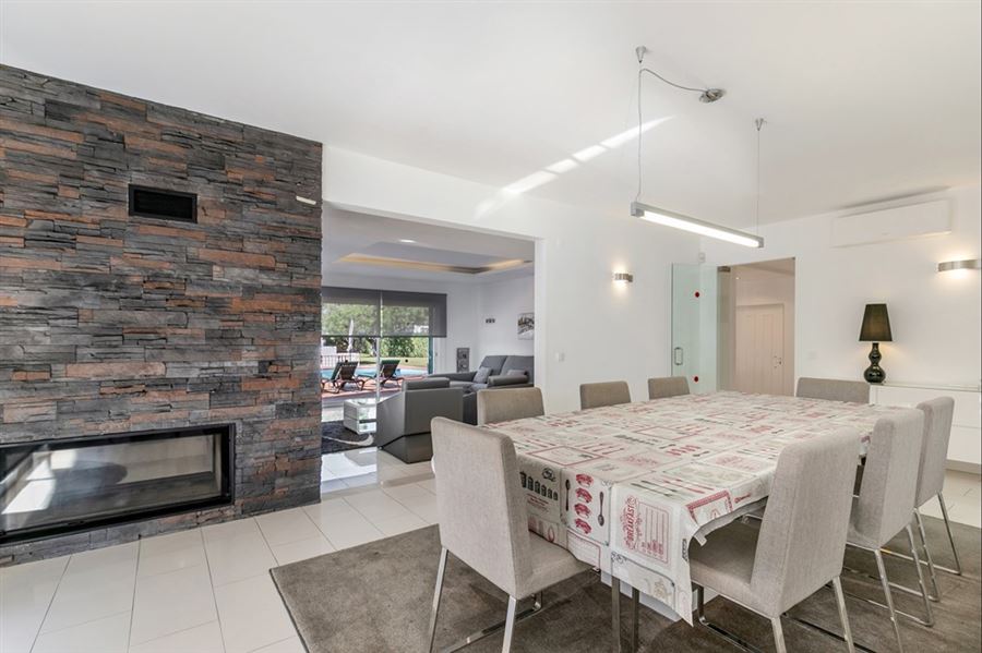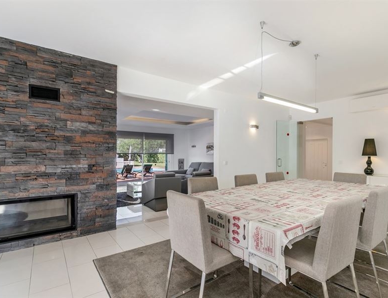 Fully renovated, this property enjoys the best of both worlds with its traditional exterior and modern interior. Spread across two floors, it comprises a bright and open living room leading into a spacious dining room and seating area. All of which is divided by a double sided fireplace – a great feature of this property. From the living room you can head directly out into the private garden where you’ll find a generously sized swimming pool which is perfect for the warmer summer months experienced in the Algarve. A modern kitchen has been fully equipped with all the necessary fixtures and appliances.
