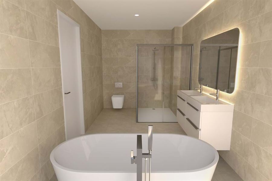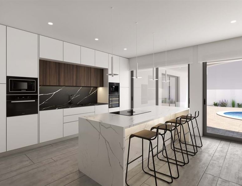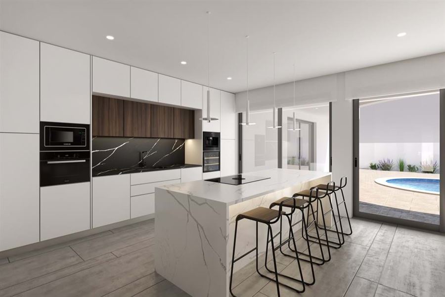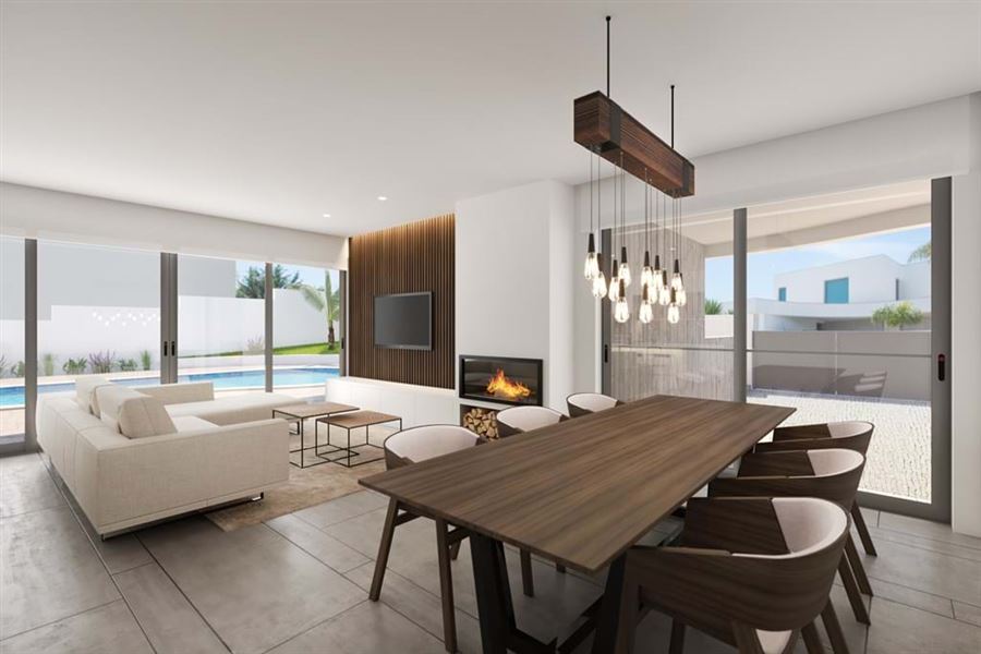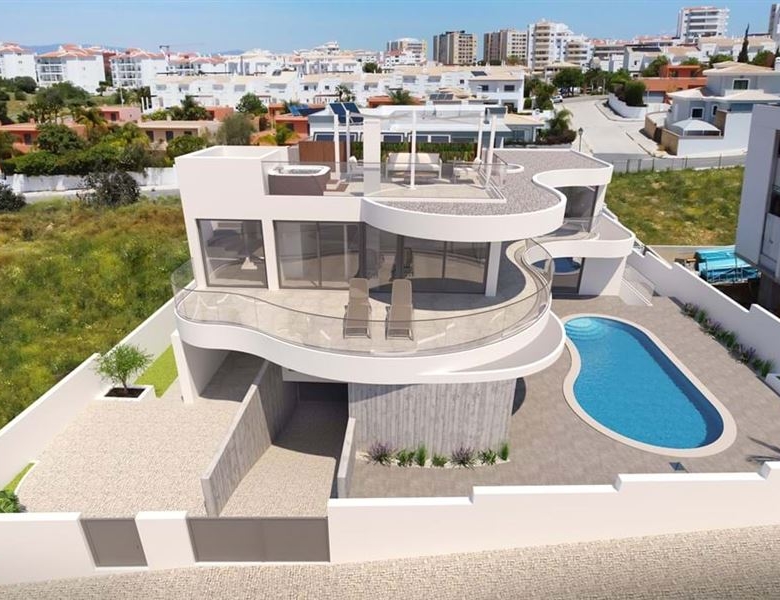 This four bedroom villa for sale in Porto de Mós is currently under construction, located in a private residential area, only a four minutes drive from the beach and walking distance from all sorts of amenities.