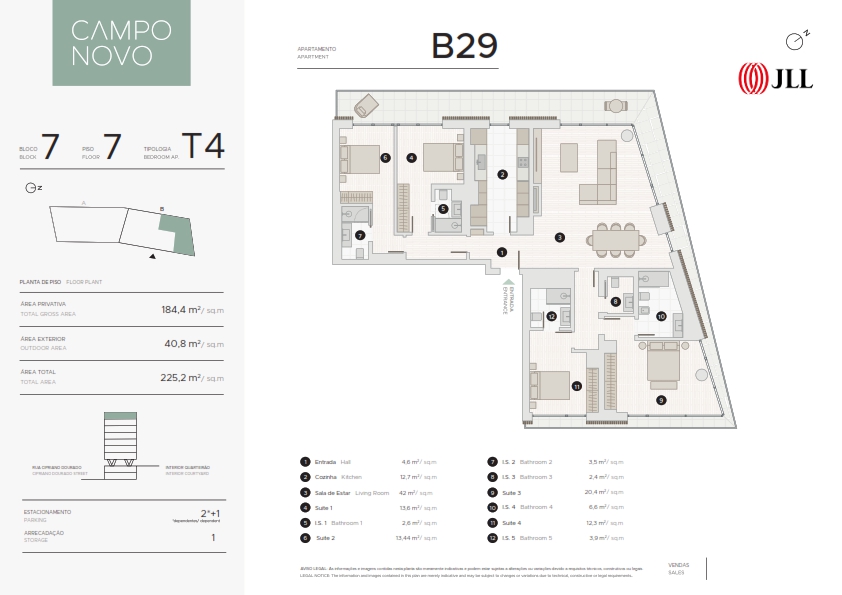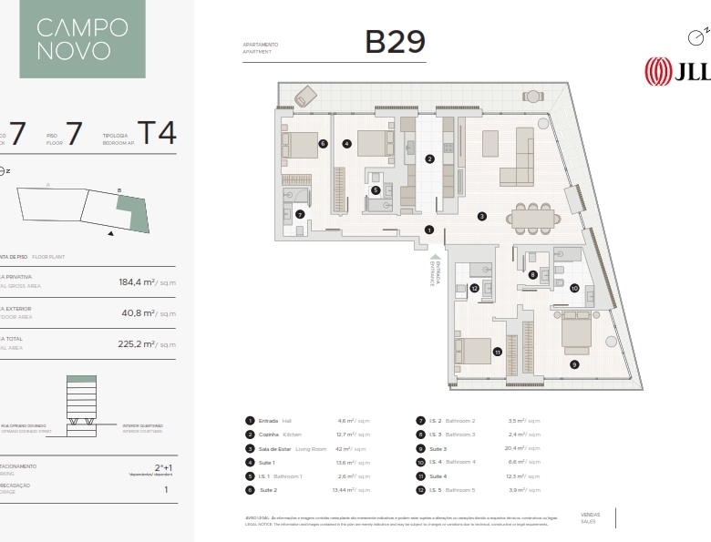 4 Bedroom apartment, new, with 186 sqm (gross floor area), 3 parking spaces and balcony, at the Campo Novo condominium, in Campo Grande, Lisbon. All apartments have large areas, plenty of natural light, balconies, parking, and storage areas. .The apartments are extremely comfortable featuring elegant finishes. More than just a set of buildings, Campo Novo is a sustainable ecosystem of its own, with a playground, shops, cafés, restaurants, and offices. It stands out for its luxury proposal in every detail: heated indoor swimming pool, rooftop, parking with charging station for electric vehicles, and a gym. Campo Novo is located in Campo Grande, one of the most central areas of greater Lisbon, with a wide range of shops, 10 minutes from Cidade Universitária and the equestrian centre. It is within a short walking distance of several schools, health clinics and the famous Campo Grande garden. It also benefits from excellent road access, being close to Segunda Circular and a vast transport network, namely the underground station (green and yellow lines). Campo Novo is here to rejuvenate Lisbon with a sustainable and elegant lifestyle.