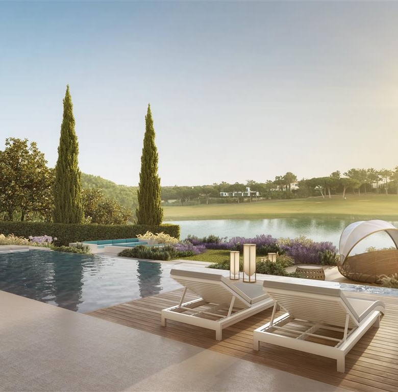 4 Bedroom apartment, new, with 399 sqm (gross floor area), 2 parking spaces, terrace and a garden with a private swimming pool, in One Green Way, in Quinta do Lago.The One Green Way Development is a new project located in Quinta do Lago, offering privacy and exclusivity worthy of a resort. With spectacular views overlooking the golf course to the north, this gated community has 89 contemporary residences, of which 27 are villas and 62 apartments, spread over three different types: Horizon Residences (4 to 6-bedroom), Panorama Residences (3 and 4-bedroom) and Garden Residences (3 and 4-bedroom). One Green Way invites you to enjoy the many services and amenities offered by Quinta do Lago, as well as the next generation leisure and sports facilities. Each property was carefully designed to offer the best lifestyle, with excellent indoor spaces and outdoor gardens specifically created to provide unrivalled privacy and wellbeing. The residences are distinguished by their elegant design, with the mark of a highly reputed architecture atelier, and by the choice of mature and colourful Mediterranean vegetation. The interior design specialists carefully selected all the details so as to convey a feeling of a relaxed lifestyle, for stronger connectivity, functionality and peacefulness. The resort invites moments of sharing among its residents, always respecting each one’s personal and private space, offering a large selection of amenities and services that enables them to work, engage in physical exercise or simply relax. The equipped gym, golf simulator, spa with sauna, beauty parlour and communal swimming pool are just some of the amenities offered by Green Way. There is also a next generation business centre, clubhouse, restaurant, rooftop bar lounge, another lounge for residents, a reception, concierge, shop, outdoor running and fitness track, padel courts, and a children’s playground. With a prime location, One Green Way provides easy access to the region’s best golf courses, as well as a selection of stunning beaches and the vibrant shopping area of the centre of Almancil. Merely 20-minute driving distance from Faro International Airport, Quinta do Lago has easy access to the main regional road network, enabling easy driving to anywhere in the Algarve or other municipalities of the region.One Green Way is the perfect place to enjoy a comfortable and unforgettable stay at Quinta do Lago.