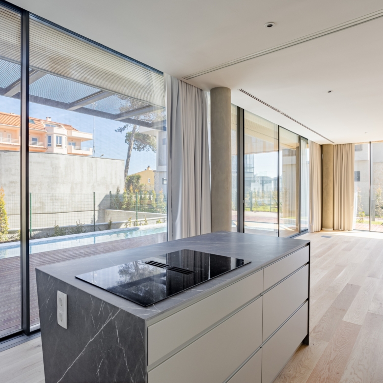 4+1 bedroom villa with a gross construction area of 363 m², featuring a pool, garden, garage, located in the prestigious Boutique Villas condominium, at the entrance of Quinta da Marinha in Cascais.This contemporary villa, with four suites, is spread over three floors. The entrance level houses the entire social area of the home, with a 58 m² living room and an open-plan kitchen that allows interaction with family and friends, with direct access to the deck and pool, promoting an experience that balances and fuses indoor and outdoor spaces. The kitchen, fully equipped with Smeg appliances, can be closed off with sliding panels. In the outdoor deck area, where the pool is located, you can enjoy a gourmet area prepared for barbecues, conveniently connected to the kitchen for greater support. On the upper floor, there are three suites with balconies, with the master suite featuring a walk-in closet. The lower floor has a multipurpose room, laundry room, full bathroom, storage room, and access to the garage box for three cars. The large glass facades provide plenty of light, complemented by excellent east, south, and west sun exposure. The house features high-quality materials and the security of living in a luxury condominium.The condominium has 16 villas, all with private pools and gardens.Located in a quiet area, close to the sea and the bike path that connects Cascais to Guincho Beach, it is a 10-minute walking distance from the Sheraton Cascais Resort and Onyria Quinta da Marinha Hotel. It’s a 5-minute drive from CUF Cascais Hospital, 10 minutes from King’s College School Cascais, 14 minutes from Salesianos do Estoril School, Deutsche Schule Estoril, and Santo António International School, 20 minutes from St. Julian’s School Carcavelos and Nova School of Business and Economics. It’s 5 minutes from the A5 highway access and 30 minutes from Lisbon airport.