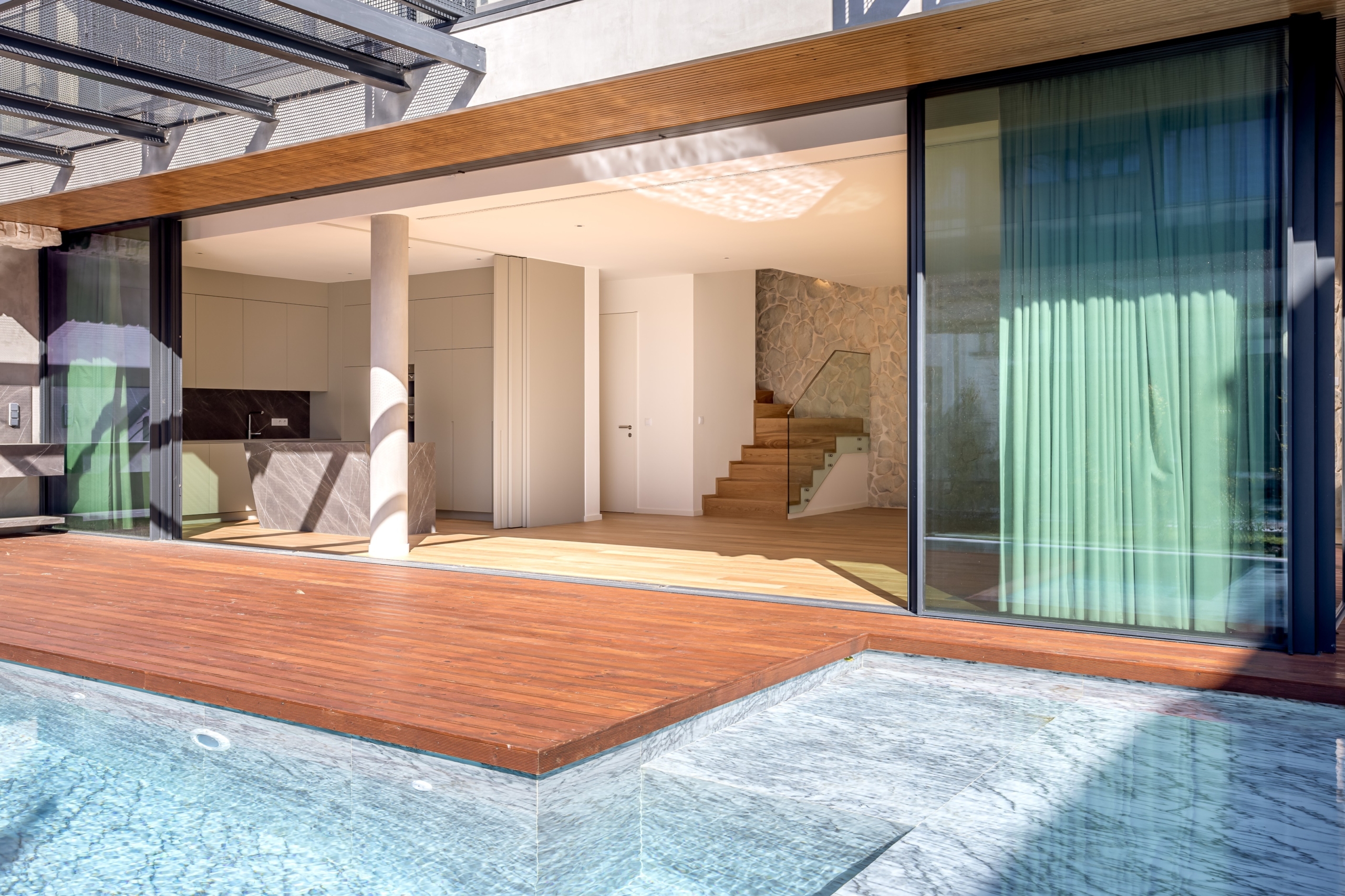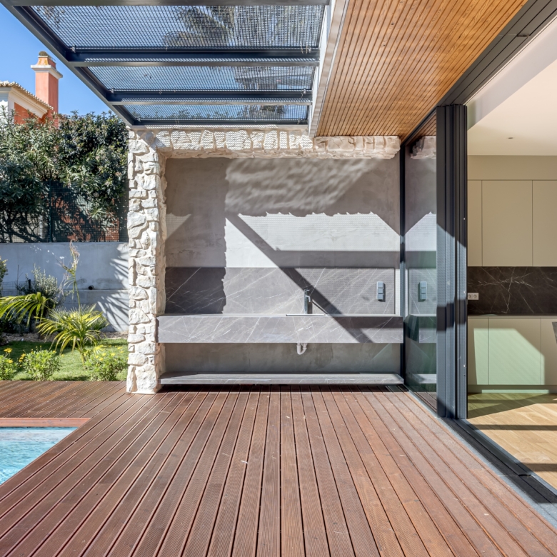 4+1 bedroom villa with a gross construction area of 363 m², featuring a pool, garden, garage, located in the prestigious Boutique Villas condominium, at the entrance of Quinta da Marinha in Cascais.This contemporary villa, with four suites, is spread over three floors. The entrance level houses the entire social area of the home, with a 58 m² living room and an open-plan kitchen that allows interaction with family and friends, with direct access to the deck and pool, promoting an experience that balances and fuses indoor and outdoor spaces. The kitchen, fully equipped with Smeg appliances, can be closed off with sliding panels. In the outdoor deck area, where the pool is located, you can enjoy a gourmet area prepared for barbecues, conveniently connected to the kitchen for greater support. On the upper floor, there are three suites with balconies, with the master suite featuring a walk-in closet. The lower floor has a multipurpose room, laundry room, full bathroom, storage room, and access to the garage box for three cars. The large glass facades provide plenty of light, complemented by excellent east, south, and west sun exposure. The house features high-quality materials and the security of living in a luxury condominium.The condominium has 16 villas, all with private pools and gardens.Located in a quiet area, close to the sea and the bike path that connects Cascais to Guincho Beach, it is a 10-minute walking distance from the Sheraton Cascais Resort and Onyria Quinta da Marinha Hotel. It’s a 5-minute drive from CUF Cascais Hospital, 10 minutes from King’s College School Cascais, 14 minutes from Salesianos do Estoril School, Deutsche Schule Estoril, and Santo António International School, 20 minutes from St. Julian’s School Carcavelos and Nova School of Business and Economics. It’s 5 minutes from the A5 highway access and 30 minutes from Lisbon airport.