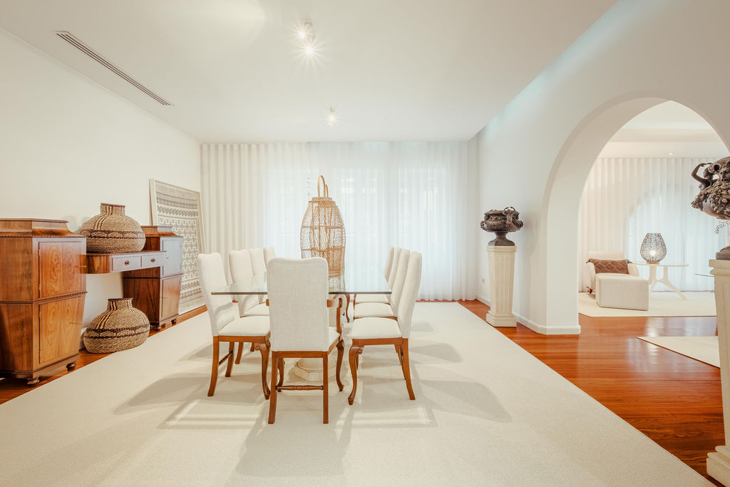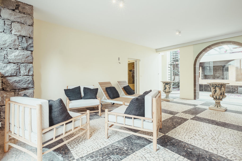 4 bedroom villa with 561 sqm of gross construction area, garden, and pool, set on a 717 sqm plot in Funchal, Madeira. The villa is spread over two floors. On the ground floor, there is a living room, a dining room, a fully equipped kitchen, a guest bathroom, an office, a gym, and lounge area with a Jacuzzi and Turkish bath. On the first floor, there are three suites, including a master suite with 18 sqm and a walk-in closet, a maid’s room, a solarium, and a pool. In the outdoor area, there is also a barbecue, garage, and technical areas. Within a 10-minute walking distance from the CR7 Museum, Funchal Marina, and Municipal Garden. With excellent accessibility, it is a 5-minute drive from the highway, beach area, tennis and paddle courts, nurseries, public and private schools. It is 20 minutes away from Palheiro Golf and Madeira International Airport.