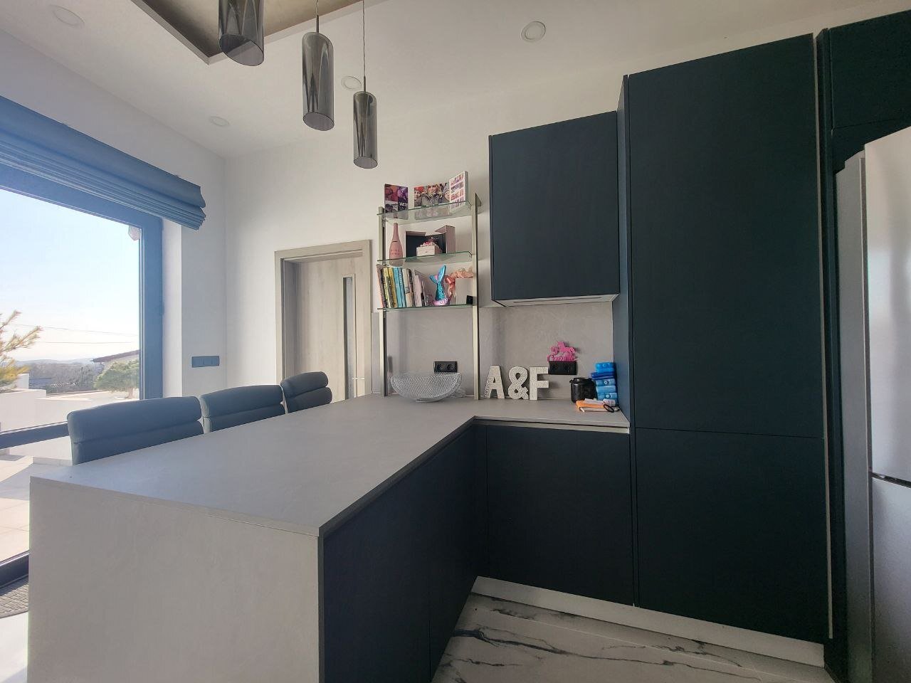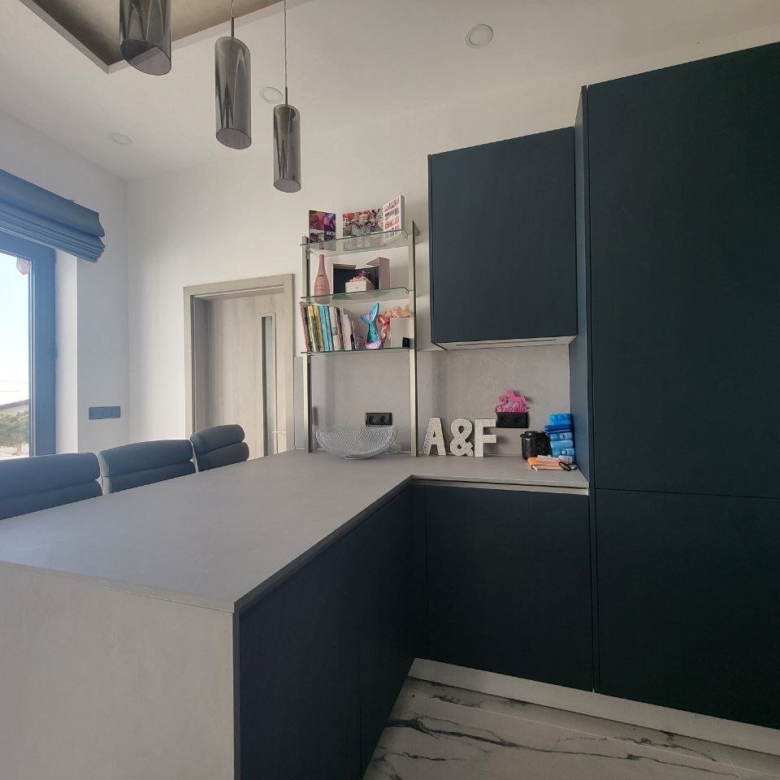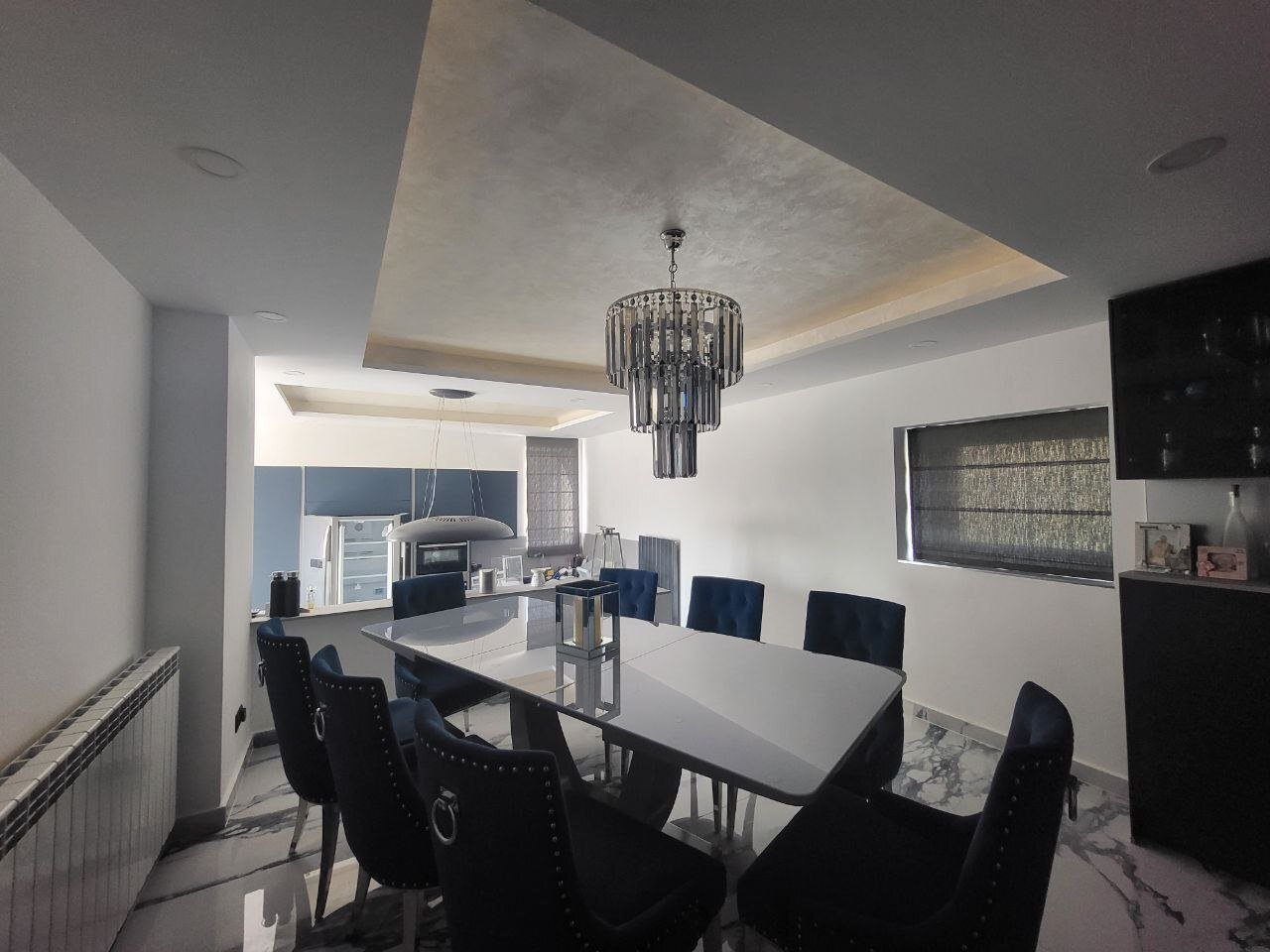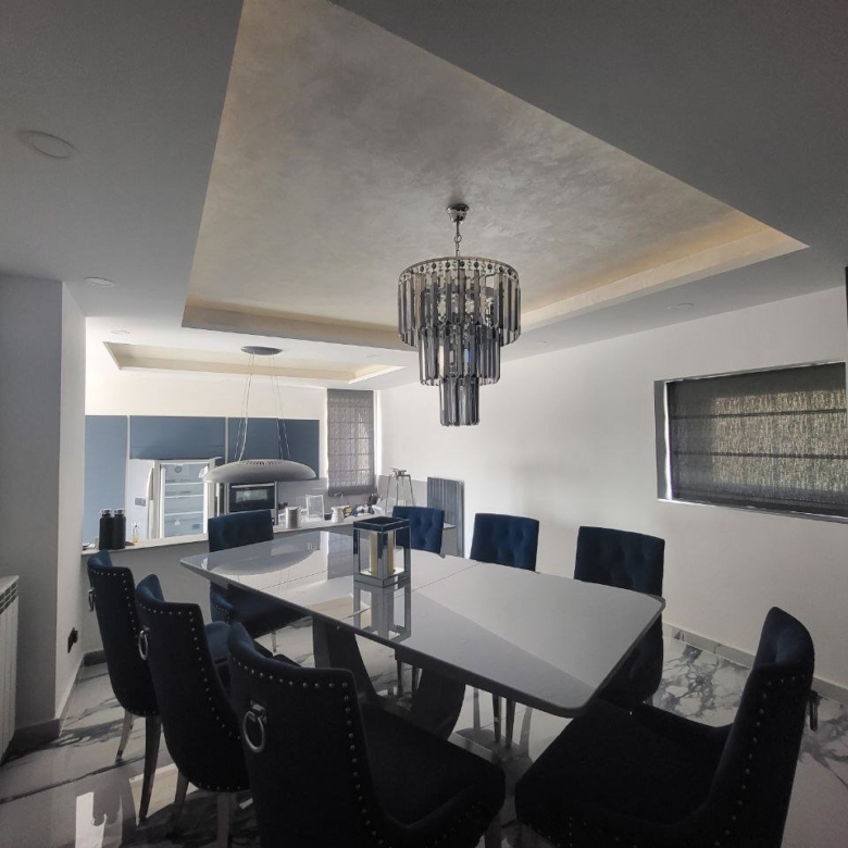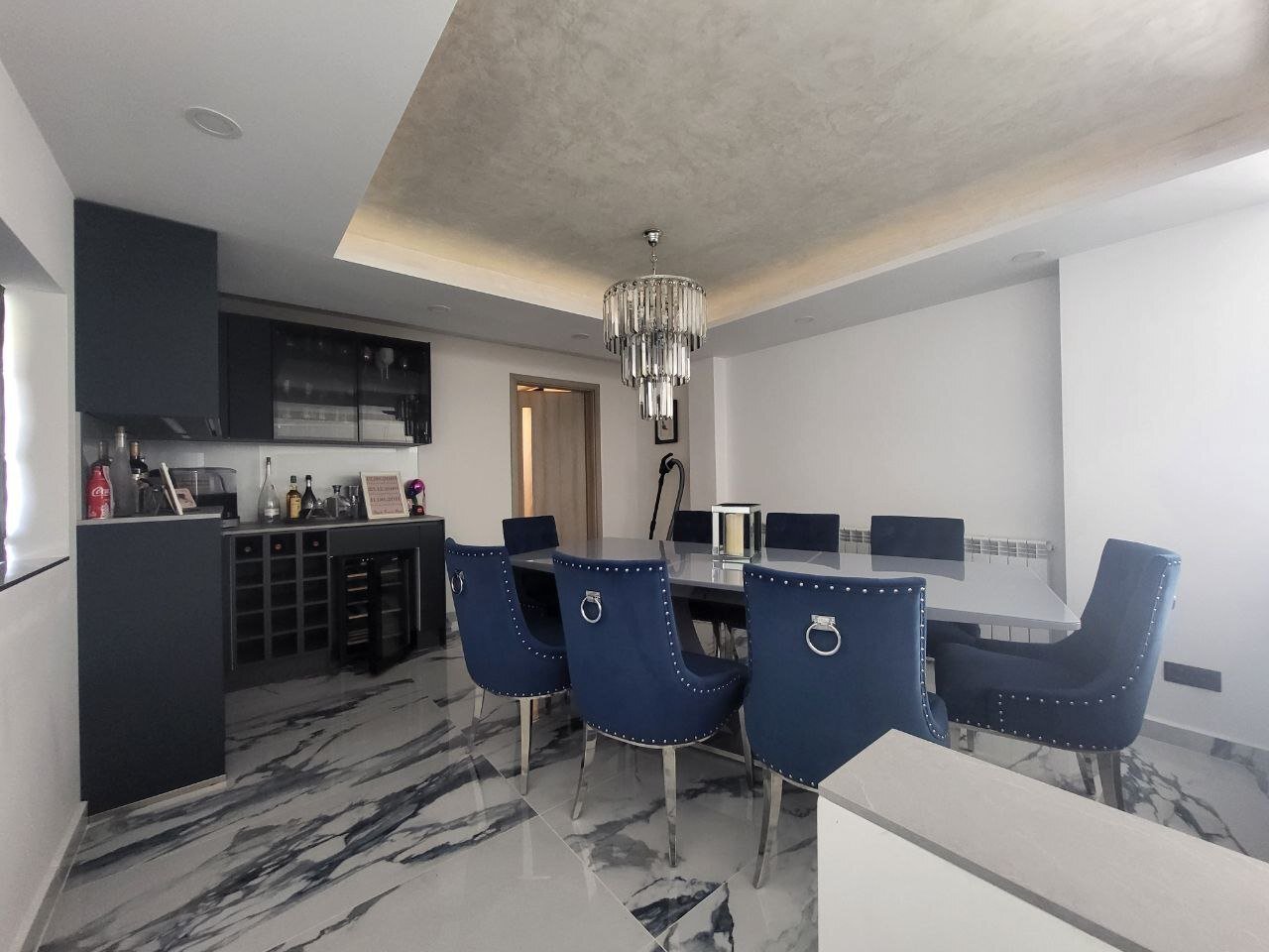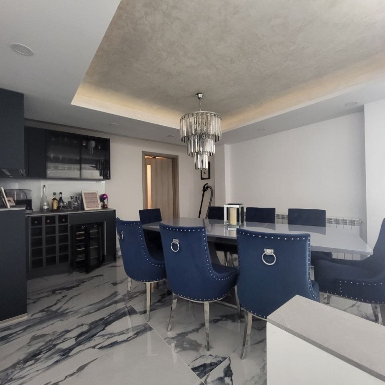 The property is sold fully furnished and ready to move in. Kitchen and dining room lighting can be controlled via Wi-Fi; suspended ceilings, hidden lighting with Alexa support, and a complete Arcus security system are installed.