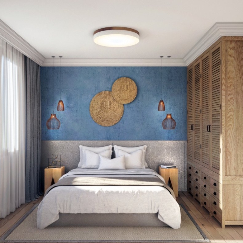 On the second floor, there is a staircase and a corridor leading to two bedrooms, each with its own bathroom and wardrobe, as well as a balcony. One of the bedrooms offers panoramic views of the sea.