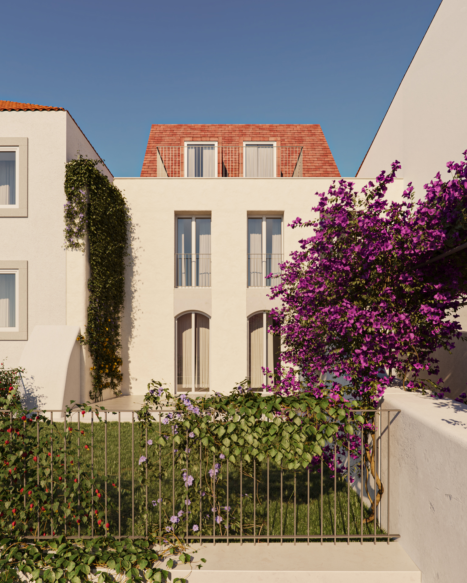 4-bedroom house with 310 sqm of gross construction area, 255 m2 above ground and 55 m2 below ground, with terrace and garden, situated on a 256 m2 plot, located at Travessa das Mónicas 17, in Graça, Lisbon. This turnkey project involves the complete demolition of the existing building, with approved architectural and specialty licensing and paid construction permit. The work is about to begin, with an estimated construction period of 18 months.The house is composed of four floors, preserving historical elements such as the plot boundary wall, entrance staircase and conversation seats, pergola, and terrace-balcony. On the -1 floor, there’s a basement with 3.05 m2 storage, 6.5 m2 technical areas, 4.2 m2 laundry room, 3.2 m2 bathroom, and a 12.07 m2 wine cellar with vaulted ceiling, corresponding to an archaeological space of the old cistern. The ground floor is dedicated to common areas, including a 31 m2 dining room with integrated kitchen, 1.82 m2 guest bathroom, and 36 m2 living room. These spaces have direct access to three outdoor areas: a 24 m2 inner patio, a 21 m2 balcony/terrace, and a 6.5 m2 sitting and garden area. The first floor corresponds to the private area, with a 20.30 m2 master suite and 7.10 m2 bathroom, a second 15.75 m2 suite with 6.43 m2 bathroom, and a 13 m2 dressing room or bedroom extension. The second and top floor, in the attic, offers a 3.35 m2 support bathroom and a 21 m2 area that can be used as an additional bedroom, with sufficient regulatory height. The dormer windows provide a view of the Tagus River.Located in one of the most charming and historical areas of Lisbon, Graça, this house benefits from a privileged location, combining the charm of traditional neighborhoods with easy access to modern services and leisure areas. It’s just a 5-minute walk from the Graça viewpoint, offering stunning panoramic views of the city. The property is a 10-minute walk from Graça metro station (Green Line) and a 15-minute walk from the iconic São Jorge Castle.In terms of accessibility, it’s a 10-minute drive from Lisbon’s historic center, including Baixa and Chiado. São José Hospital is about a 5-minute drive away, while Dona Estefânia Hospital is approximately 10 minutes. Instituto Superior Técnico can be reached in 15 minutes by car, as well as El Corte Inglés and the Calouste Gulbenkian Foundation. Humberto Delgado Airport (Lisbon Airport) is about a 20-minute drive away.