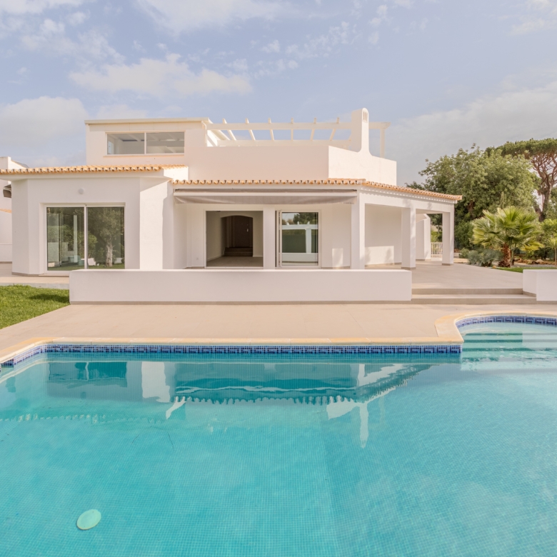 4-bedroom single-story villa with 334 sqm of gross construction area, swimming pool, garden, and garage, set on a 1,128 sqm plot of land in Vilamoura, Algarve.Renovated villa with spacious social areas, ensuring a comfortable and enjoyable environment for the whole family. All bedrooms are en-suite with large windows allowing plenty of natural light to enter. The living room features a fireplace and has direct access to a covered terrace that opens up to the garden with a swimming pool, barbecue area, and a wood-fired oven.The villa also includes an office, laundry room, enclosed garage, and a large space on the -1 level that can be used in various ways, adapting to individual needs.In the heart of Vilamoura, the Marina offers the opportunity to rent boats for recreational or deep-sea fishing, facilities for jet skis and paragliding, boat trips, and dolphin watching in their natural habitat. Vilamoura also boasts five internationally recognized golf courses, two beaches (Marina Beach and Falésia Beach), an Equestrian School, a Tennis Club, and an international casino that hosts shows.Located within a 7-minute driving distance from Falésia Beach, 8 minutes from the International College, 9 minutes from Vilamoura Marina, shopping, services, restaurants/bars. It is also a 25-minute drive from Faro Airport and a 2.5-hour drive from Lisbon and Seville.