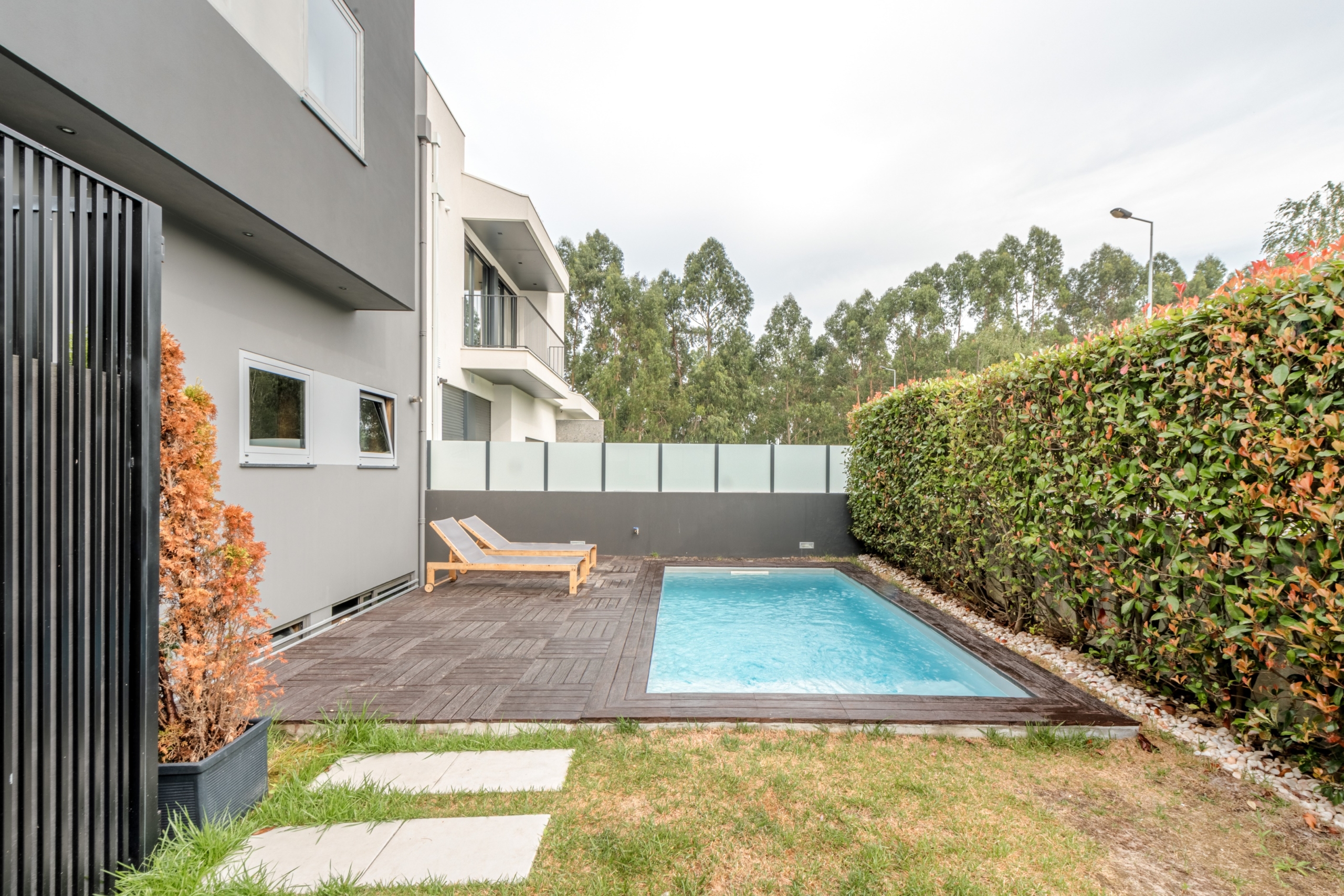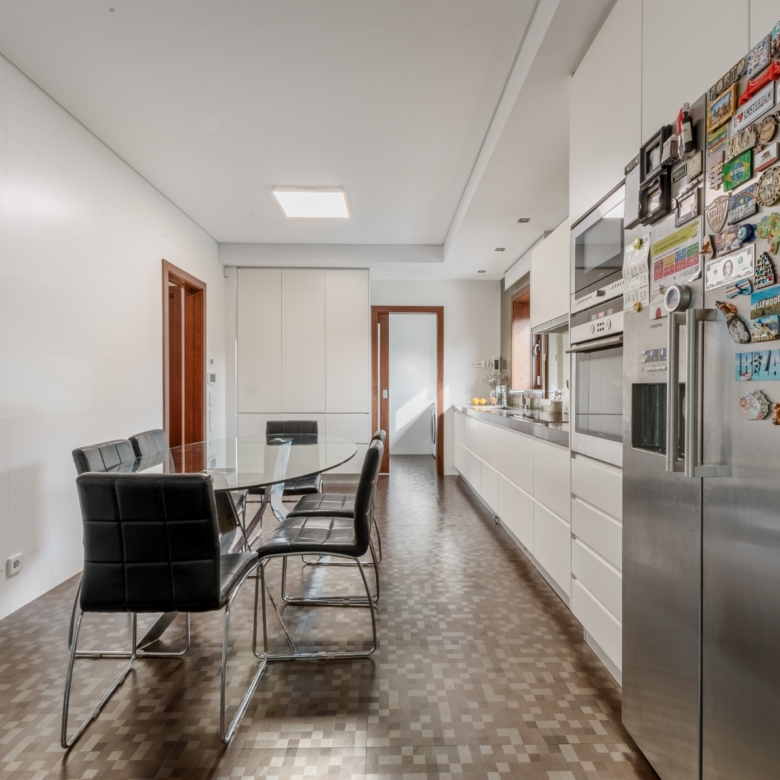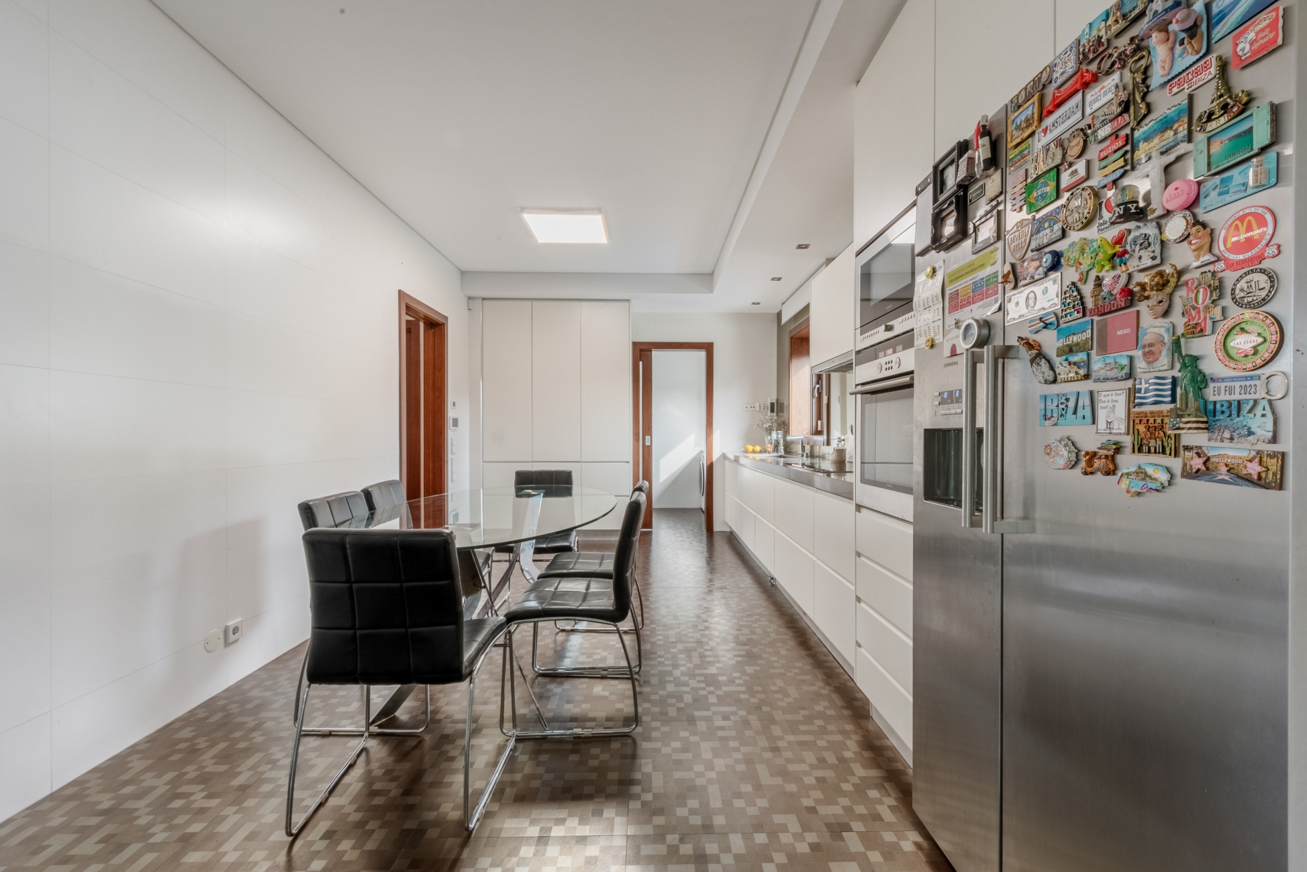 4-bedroom villa with 425 sqm of gross private area, swimming pool, and a garage for 2 cars, in Maia, Porto. Comprising a basement with a gym, party room, and a bathroom. The ground floor features an entrance hall, living and dining room, fully equipped kitchen, laundry room, guest bathroom, and access to a support room with a connection to the courtyard, garden, heated pool, and a seating area with a barbecue. On the first floor, there are three suites and an additional bedroom, all with built-in wardrobes. The top floor (attic) offers a spacious area with natural light that can be used as an office or another bedroom. With northeastern and southwestern solar orientation, the villa receives natural light throughout the day.Located a 2-minute drive from Zona Industrial da Maia metro station, 18 minutes from Aliados in Porto, and only 9 minutes from Francisco Sá Carneiro Airport.
