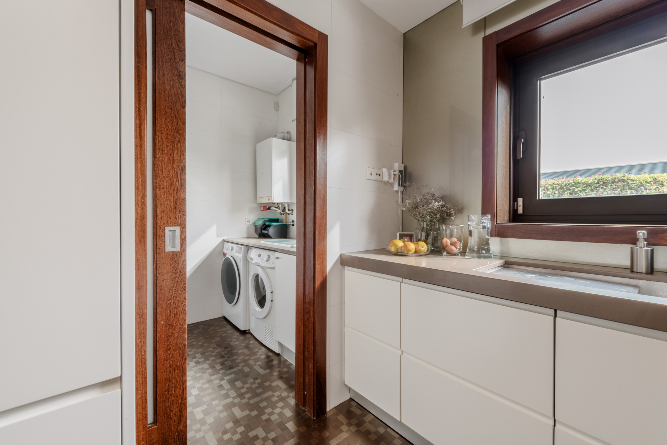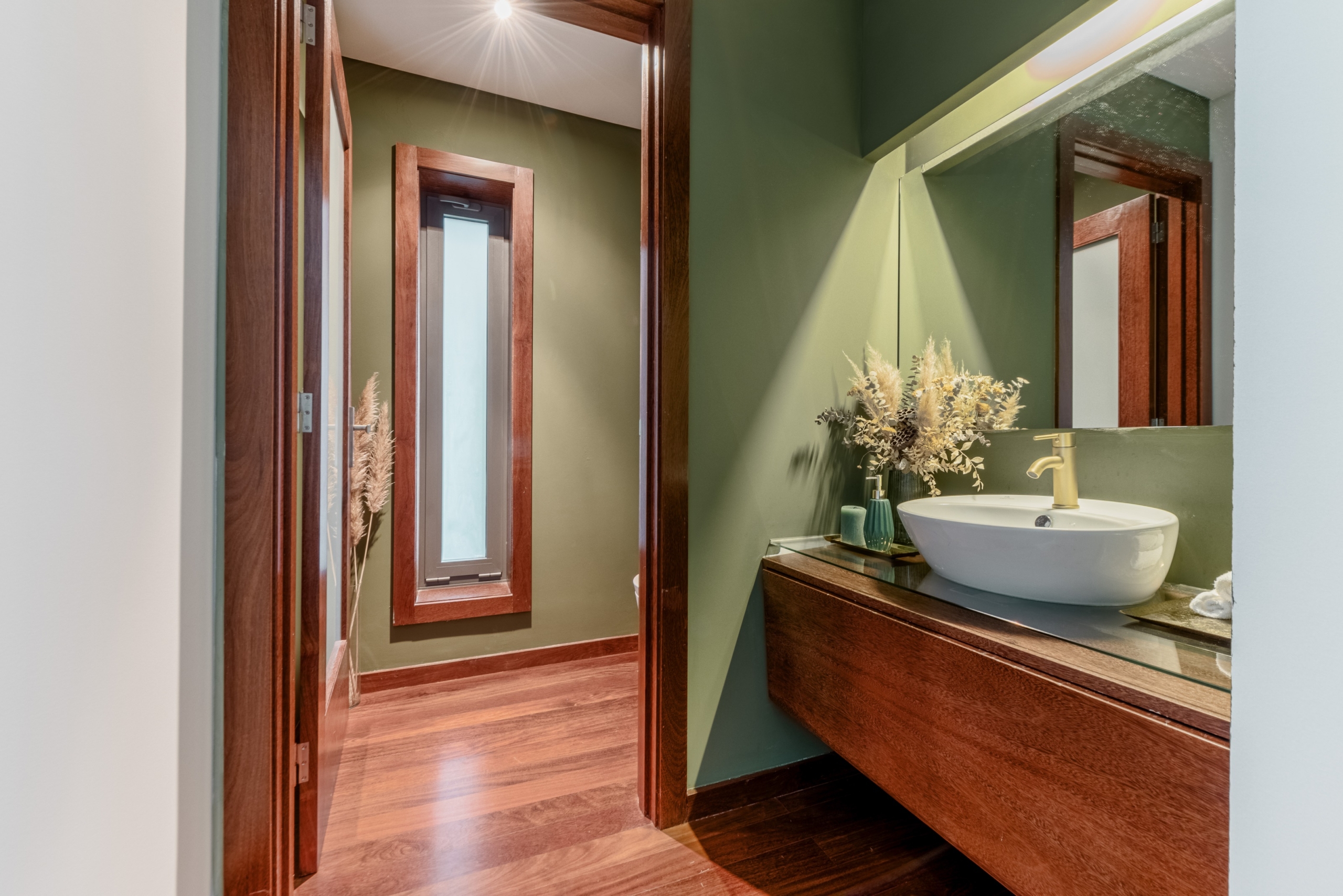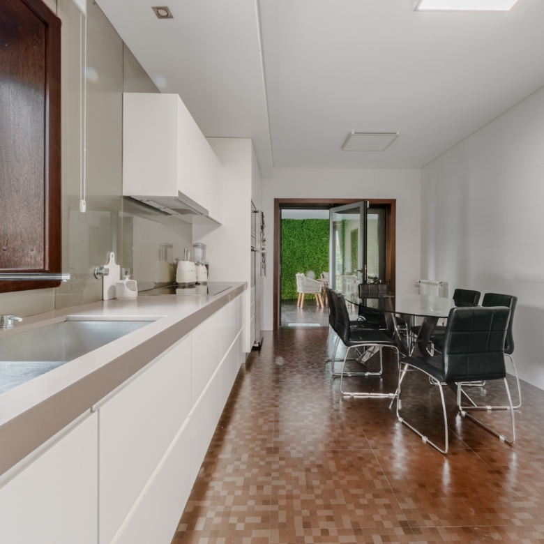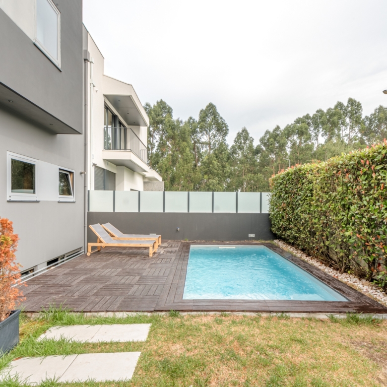 4-bedroom villa with 425 sqm of gross private area, swimming pool, and a garage for 2 cars, in Maia, Porto. Comprising a basement with a gym, party room, and a bathroom. The ground floor features an entrance hall, living and dining room, fully equipped kitchen, laundry room, guest bathroom, and access to a support room with a connection to the courtyard, garden, heated pool, and a seating area with a barbecue. On the first floor, there are three suites and an additional bedroom, all with built-in wardrobes. The top floor (attic) offers a spacious area with natural light that can be used as an office or another bedroom. With northeastern and southwestern solar orientation, the villa receives natural light throughout the day.Located a 2-minute drive from Zona Industrial da Maia metro station, 18 minutes from Aliados in Porto, and only 9 minutes from Francisco Sá Carneiro Airport.