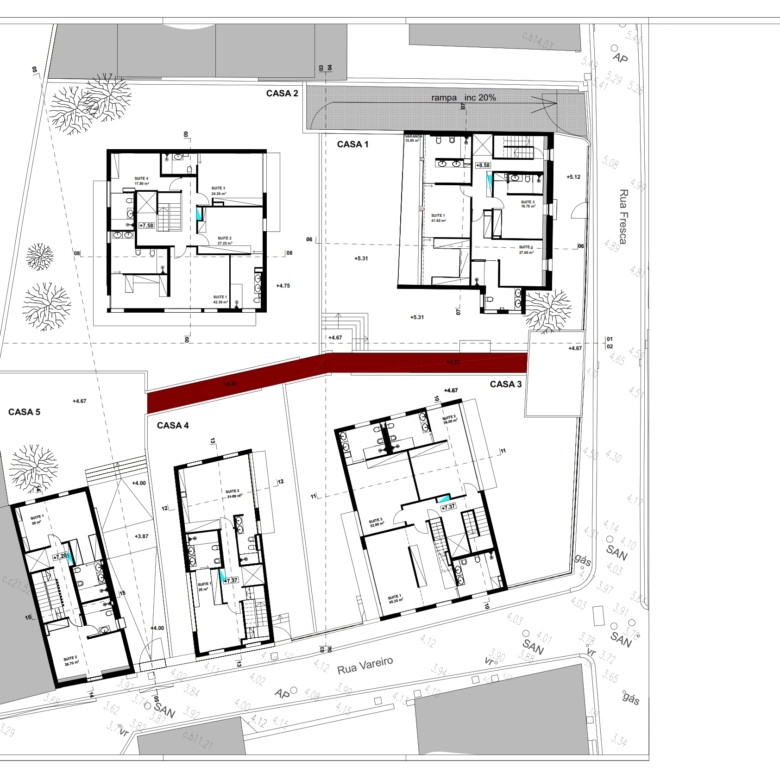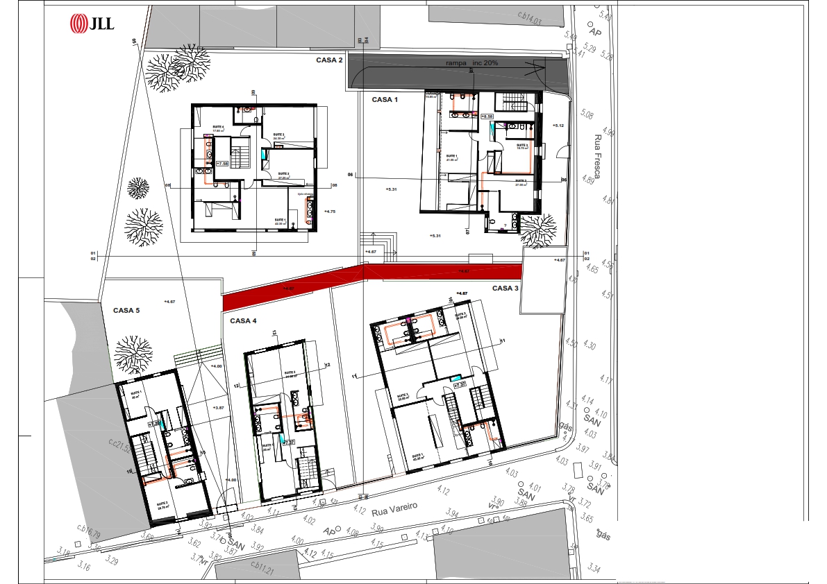4-bedroom villa, 381 sqm (gross construction area), with elevator, garage and balcony, set in a gated community, in Leça da Palmeira, Matosinhos, Porto. The property is spread over three floors and has a living room with heat exchanger, ‘Gnessis’ kitchen and dining room, four en suite bedrooms, all with wardrobes, guest bathroom and attic. The villa also has a closed garage for five cars and private laundry room, with access by private elevator inside the house.”Moradias Sarsfield” is an exclusive, premium development comprising 5 detached luxury villas (from 2 to 4 bedrooms), under construction. Set in a gated community, it enjoys a prime location in the centre of Leça da Palmeira. Designed by the Arquitetura ErgoCirculo architecture studio, each villa will have a closed, exclusive garage. The entire construction of this development was designed according to high-quality standards, with premium and exclusive finishes. Each house will be equipped with high-quality materials, including electric shutters and air conditioning. This unique gated community perfectly combines indoor and outdoor spaces. End of the work scheduled for the second half of 2023. Located near Leça Marina, near shops, services, schools and transport. In the heart of the historic centre, it is a 8-minute walking distance to Leça da Palmeira beach, restaurants and bars, 12 minutes from Piscina das Marés tidal pool and 13 minutes from Mercado de Matosinhos. Within 4-minute driving distance from Exponor and access to the A28, 8 minutes from Matosinhos beach and Aterro beach, 12 minutes from the Porto City Park, Foz do Douro, downtown Porto and Porto Airport.
