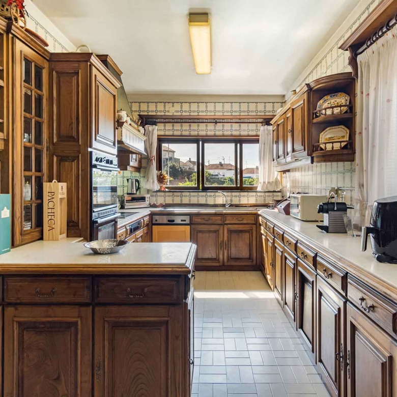 4-bedroom villa with 550 sqm of gross construction area, garden and garage, set on a 3125 sqm plot, in Perafita, Matosinhos, Porto. The four-sided property consists of, on the ground floor, entrance hall, two living rooms, wine cellar, garage, one suite, pantry, and guest bathroom. On the first floor, the entrance hall, supported by a guest bathroom, which divides the social area from the private area. The social area consists of a living room with fireplace, dining room, and games room. It also has an equipped kitchen, and support from a 22 sqm pantry with fireplace. The private area has one suite and three bedrooms, supported by a full bathroom. In the garden, there’s a tank, garage, storage room, chicken coop, two wells, and an agricultural area set on 2000 sqm of land.Located close to commerce, services, cultural facilities, educational institutions, and transportation. It’s 5 minutes driving distance from Cabo do Mundo Beach, 10 minutes from Leça da Palmeira Beaches, the Tidal Pool, Quinta da Conceição, and Porto Airport. It’s also 15 minutes from Serralves Museum and Porto City Park, 20 minutes from downtown Porto, and 3 hours from Lisbon.
