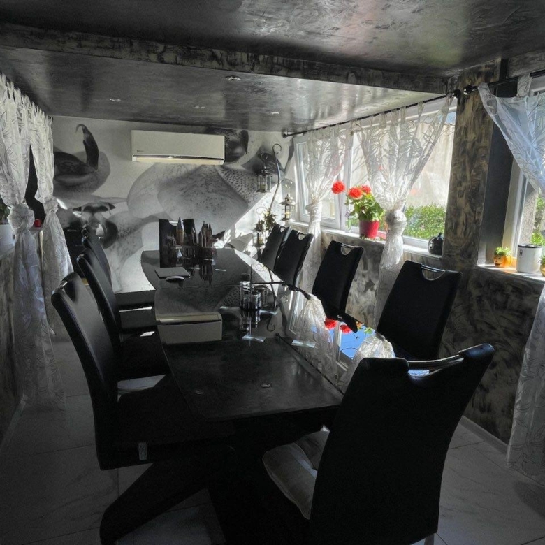 For sale is a well-maintained and versatile single-family home with a total living area of 320 m² on a flat, 665 m² large plot in the quiet village of Tvarditsa, just a few kilometers from the city of Burgas.