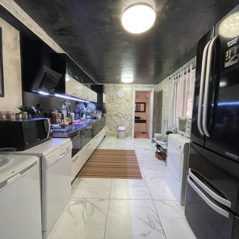 The house features a total of four furnished bedrooms as well as three additional bathrooms that are equipped with new ceramics, modern fixtures, and stylish accessories.