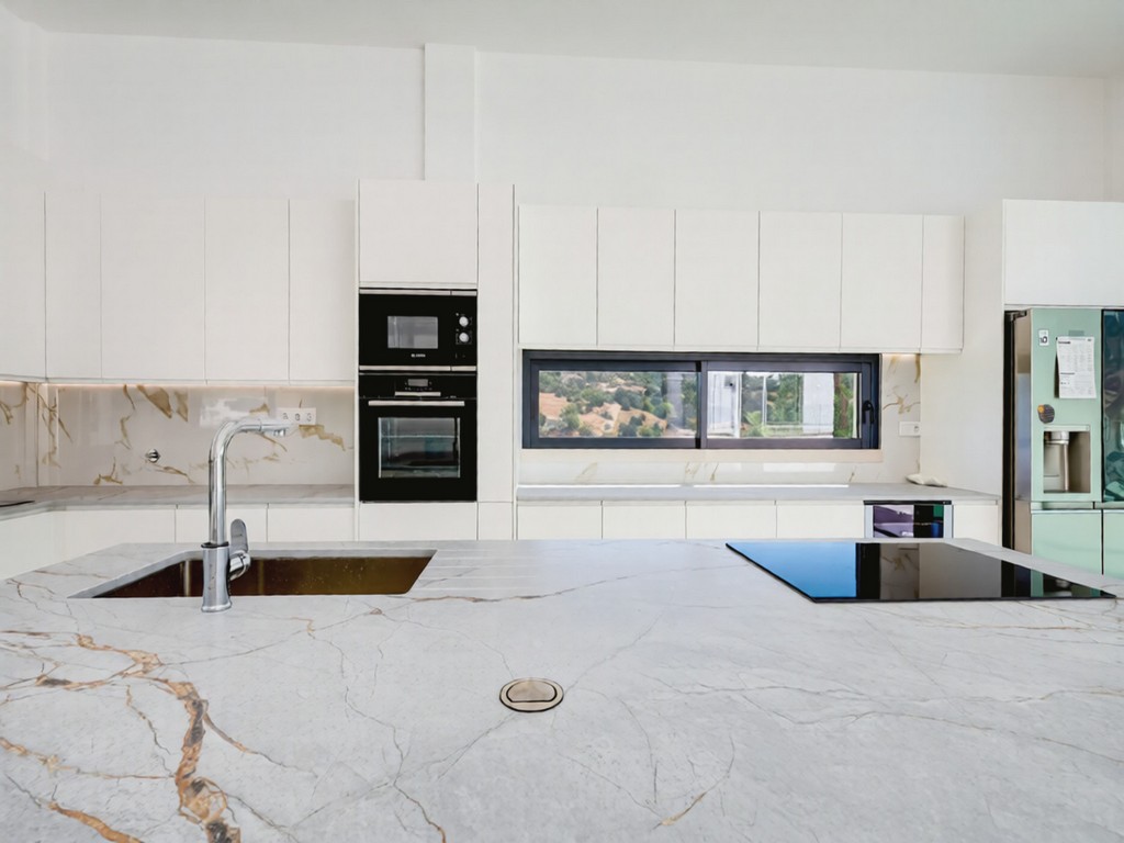 The house boasts 4 spacious bedrooms, all en suite, ensuring privacy and comfort for all family members. Additionally, there is an extra guest bathroom, perfect for visitors. The kitchen has been thoughtfully designed and is fully equipped with Bosch appliances, known for their efficiency and quality—a perfect space for culinary enthusiasts.