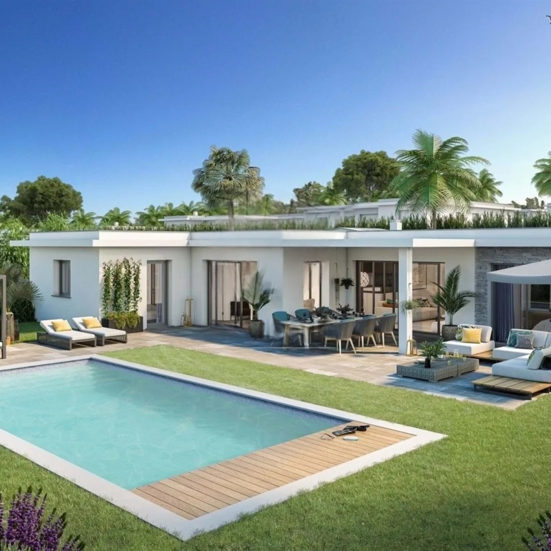 This modern, duplex villa was built with high quality materials, and benefits from en suite bedrooms, a fully equipped kitchen, basement gym, sauna, wine cellar, laundry room and garage.
