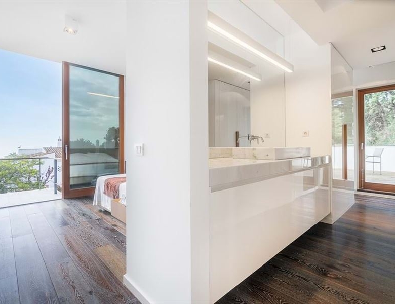 The two-storey annex was designed with a modern contemporary style in mind by the award winning architect, Miguel Ferreira, and comprises an open plan yoga/gym room on the ground floor along with a laundry/kitchenette area and storage space. Upstairs, there is a modern bedroom with a private terrace offering sea views, and an en-suite bathroom equipped with a large, walk-in shower.
