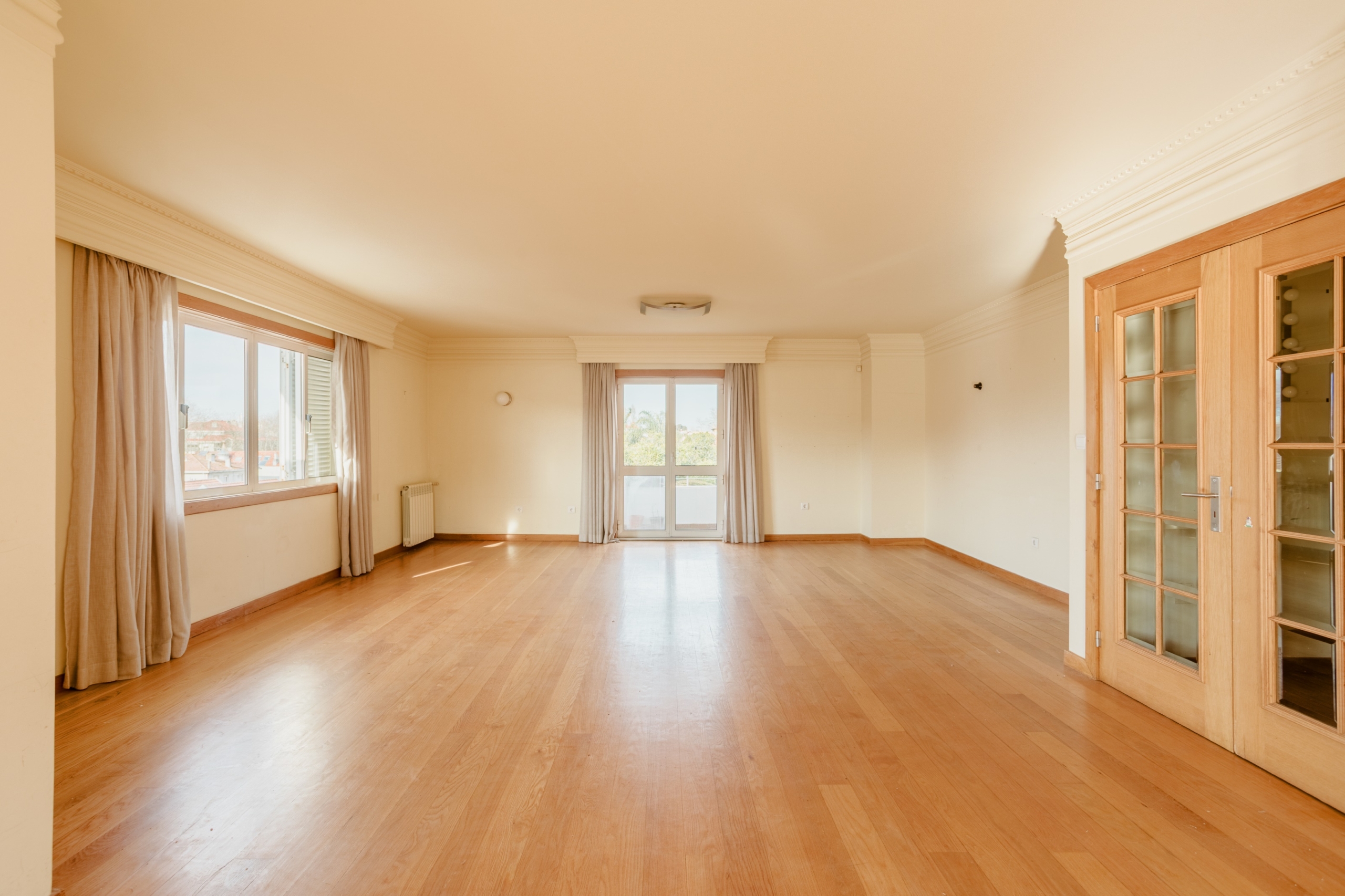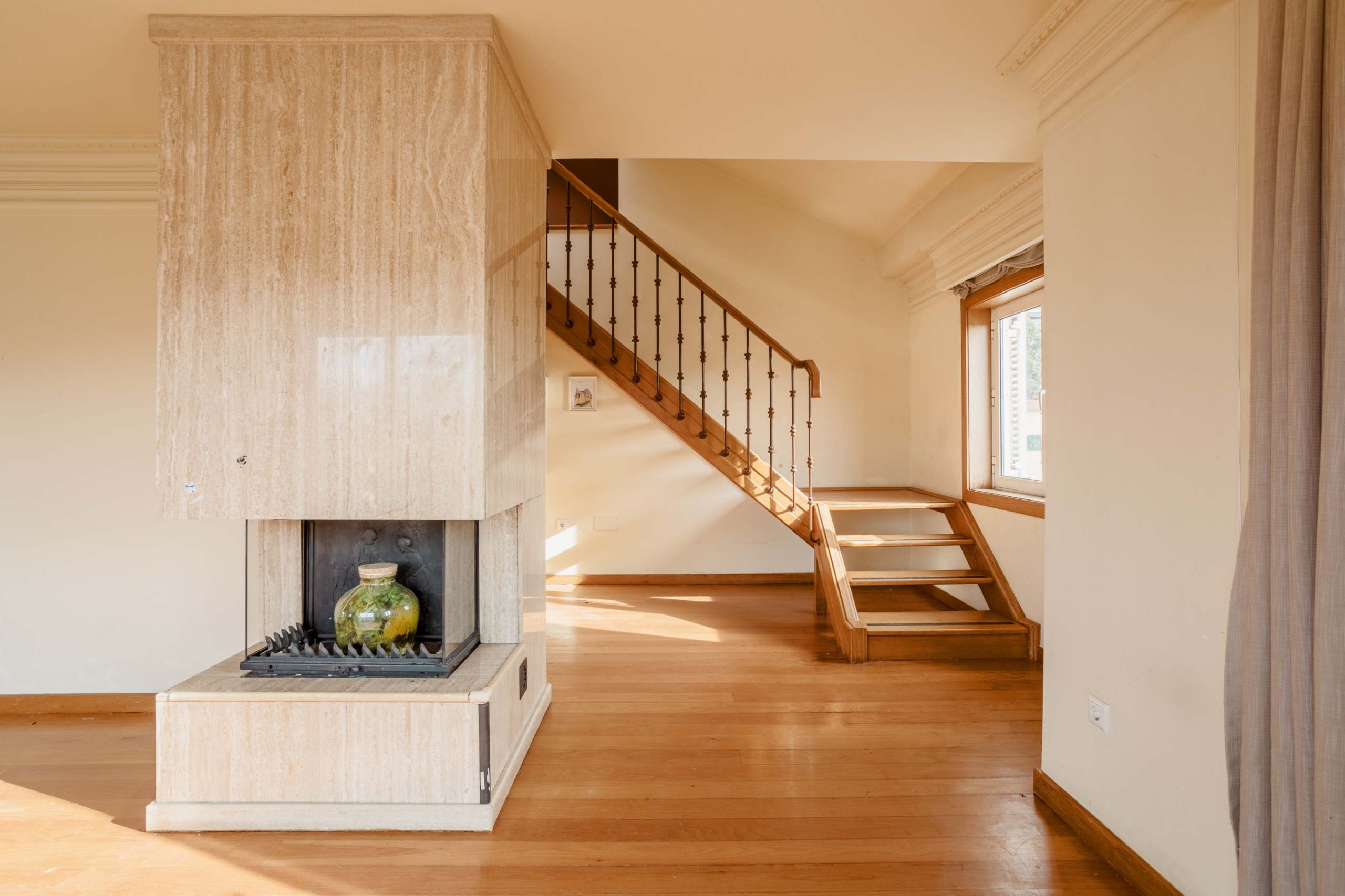 5-bedroom duplex apartment, with 210 sqm of gross private area, in a gated community, with garage, near Praça de Liége, in Foz do Douro.The apartment consists of five bedrooms, with an excellent suite and three bedrooms supported by a complete bathroom in the bedroom area. There is also another suite in the service area. The living room, with a spacious and very generous area, has a fireplace and two balconies, one facing west. The bright living room has pleasant views of gardens and the Foz houses. There is also a guest bathroom in the entrance hall. The equipped kitchen with a pantry has a laundry area. All these rooms are on the first floor of the apartment. On the second floor of the apartment, there are two attic-style rooms lined with wood, with velux windows and a wood stove. It also has a complete bathroom. One of these rooms can also serve as a bedroom.The apartment is in a building with only three residences, with an elevator, in a gated community. It has a box for four vehicles with about 80 square meters.This apartment is located in a residential area of Foz, 3 minutes walking distance from all types of commerce and transport. Foz Market, Praça do Império, and the Catholic University are 3 minutes walking distance. Rua Senhora da Luz and Avenida Brasil, on the seafront, are 5 minutes walking distance. Some of the best restaurants and beaches are within a three-hundred-meter radius of the apartment. Serralves Foundation/Garden and Avenida da Boavista are 4 minutes driving distance. The exits to VCI and highways are 5 minutes driving distance and Porto airport is 25 minutes away.