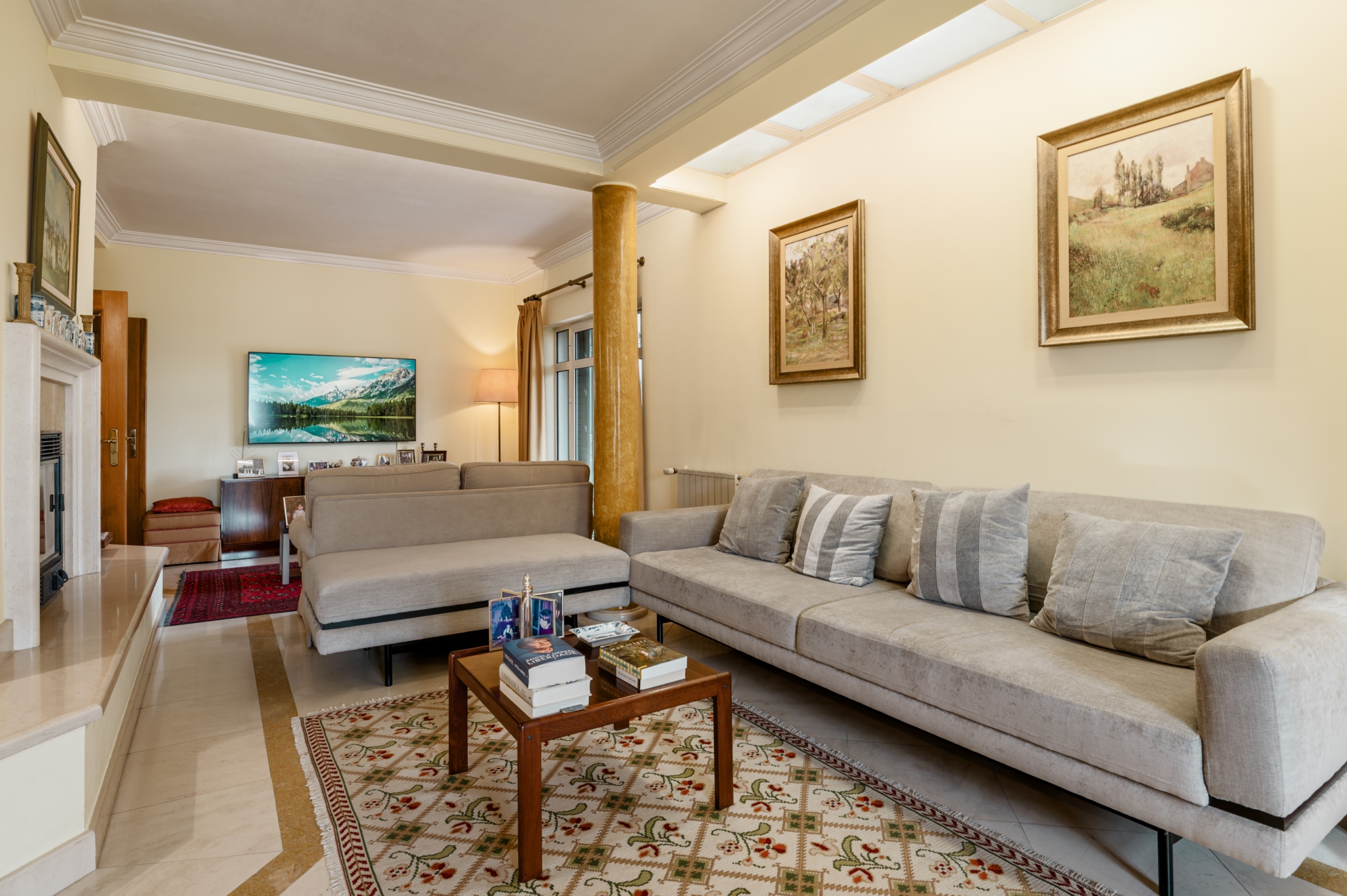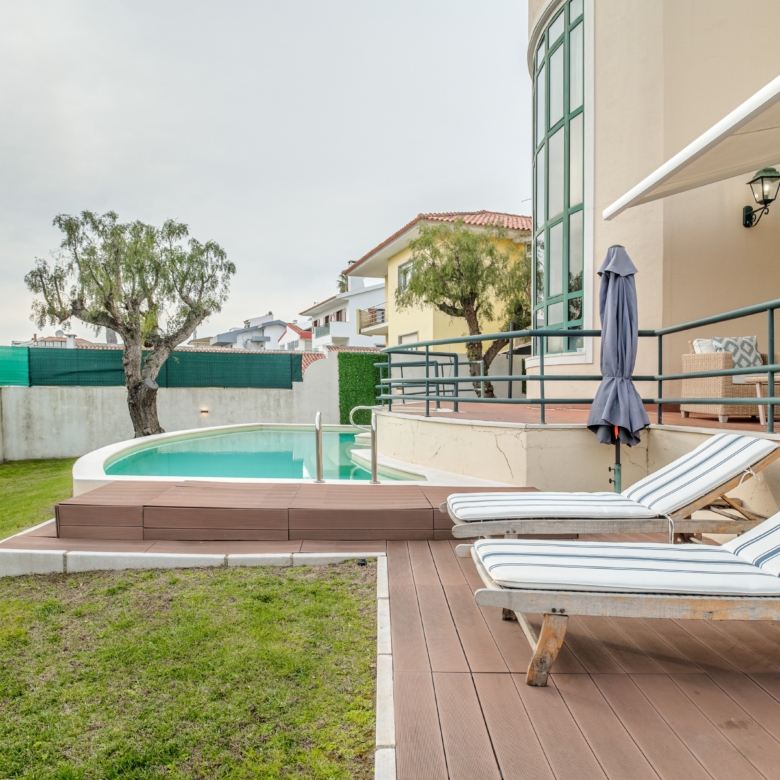 5-bedroom villa with 505 sqm of gross construction area, sea view, pool and garage, on a 645 m² Plot, located in Parede, Cascais.The villa is distributed across four floors. On the entrance level, we find a spacious hall that leads to an expansive living room of over 50 m², equipped with a heat recovery fireplace and excellent sun exposure. This space extends onto a 22 m² terrace that provides access to the heated swimming pool, offering magnificent sea views. This floor is complemented by a dining room of approximately 15 m², a fully equipped 26 m² kitchen with an adjacent pantry. Adjacent to the kitchen, we find a large laundry room with access to a terrace/porch with a barbecue area. Also on this floor, appropriately separated from the social area, there is a bedroom/office and a complete bathroom.On the upper floor, the private area features a master suite with a walk-in closet totalling 30 m², facing a panoramic terrace, a second 15 m² south-facing suite, and two additional bedrooms, ensuring comfort and privacy for the entire family. At the top of the villa, there is a magnificent versatile space which can be used as a gym, office or cinema room, perfectly complemented by a sun deck offering a panoramic sea view.The -1 floor provides a generous 150 m² space with natural light, comprising a closed garage for 2-3 vehicles, a complete bathroom, storage space and sufficient area to create a gym, studio or additional bedroom. The property features high-quality finishes, with wooden flooring throughout, an average ceiling height of 2.7 m, double-framed windows and doors, solar panels and central heating. Outside, there is additional parking for 2-3 vehicles.Located just a 5-minute walking distance from São Pedro do Estoril and Bafureira beaches, ideal for seaside walks, water sports or pure relaxation moments. The area is well served by local shops, restaurants, schools and all essential services. The main access roads, such as the coastal road and motorway, are 5-10 minutes away, whilst the train station is only 10 minutes away. Lisbon city centre is a 30-minute driving distance, ensuring excellent accessibility.