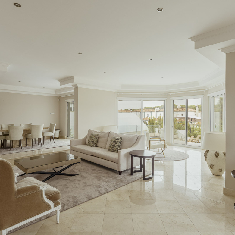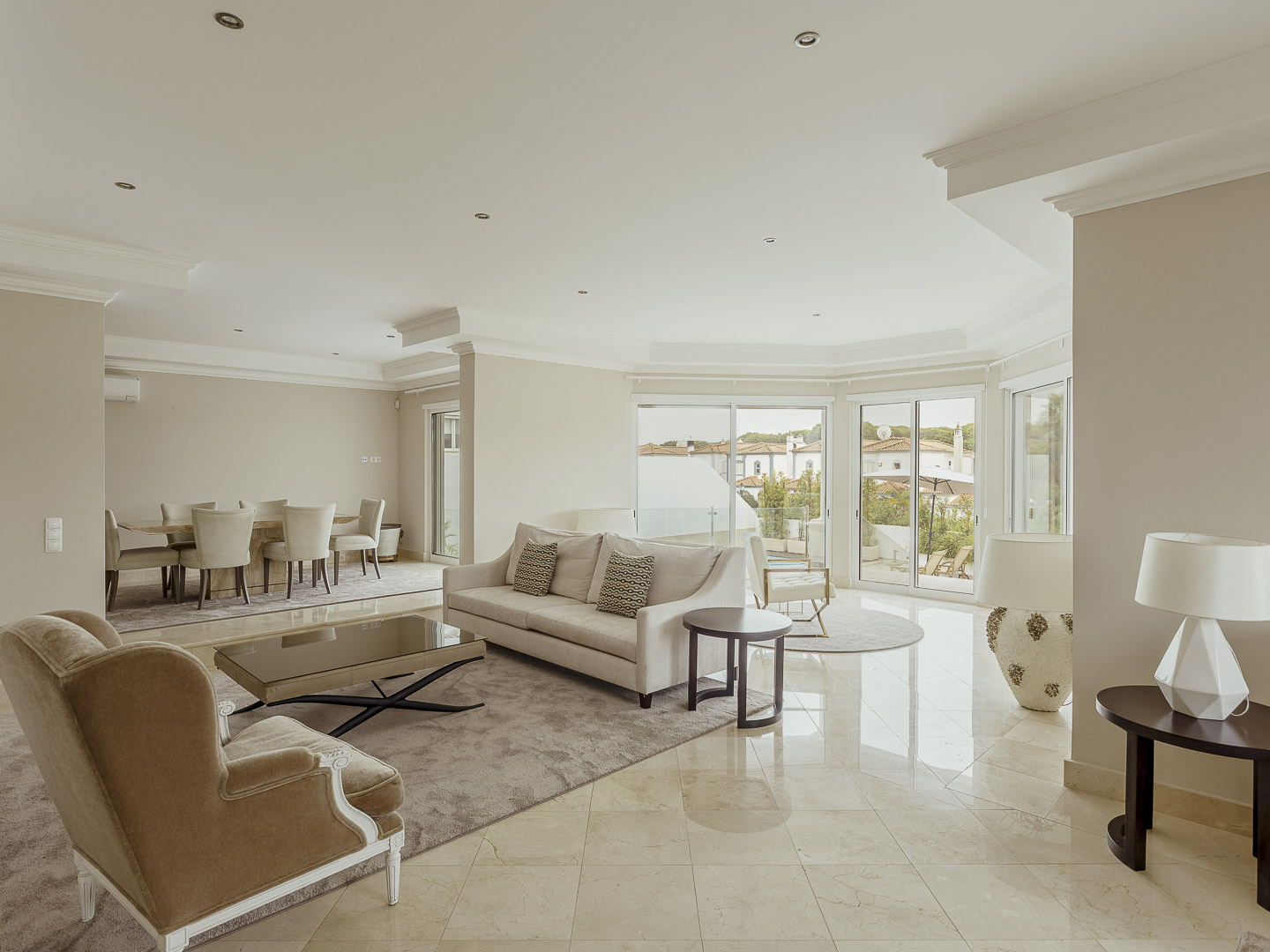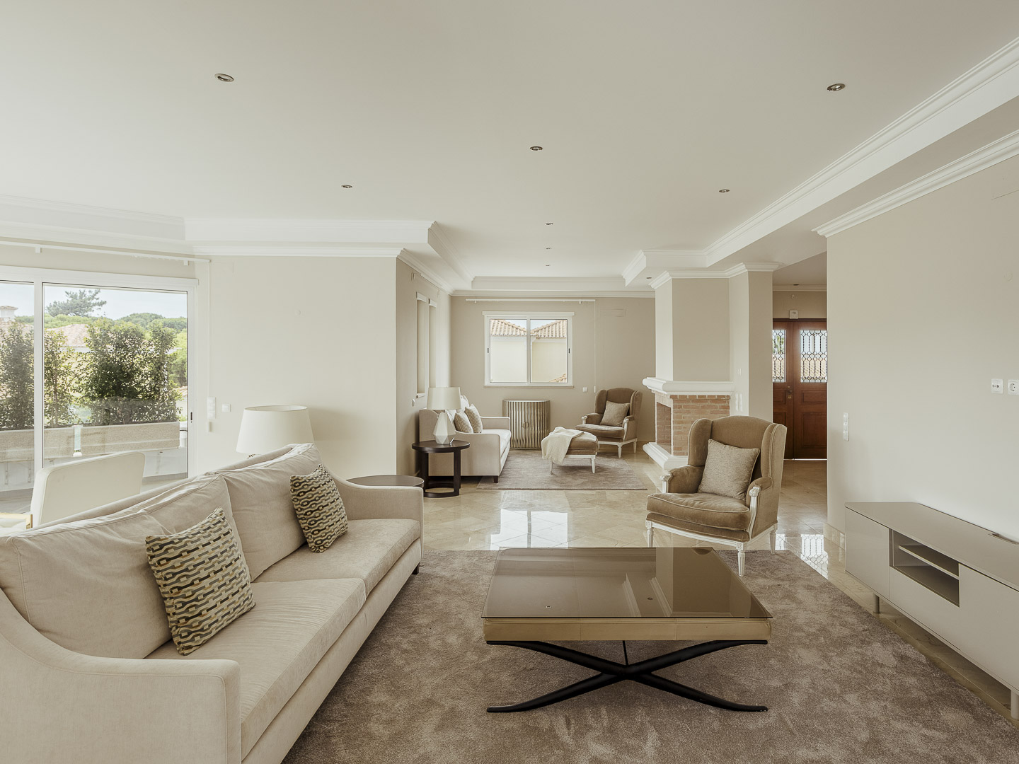 5-bedroom villa with 527 sqm of gross construction area, pool, and garage, set on a 630 sqm plot in “The Village” development, in Ferrarias, Almancil, 2 minutes from Vale do Lobo and 5 minutes from Quinta do Lago, in the Algarve.The classically styled villa is characterized by spacious rooms, with the following layout: on the main floor, a large entrance hall with a spacious living room and fireplace divided into three areas: living area, dining area, and reading area, all with access to a covered terrace leading to the pool and garden. This floor also features a guest bathroom, two en-suite bedrooms, and a fully equipped kitchen with access to an outdoor patio where you can enjoy a barbecue.On the upper floor, there are three en-suite bedrooms, all with built-in wardrobes, one of which is a large master suite with access to a spacious terrace overlooking the pine forest and sea.On the lower floor (basement), there is a garage for 4 to 5 cars with an electric gate, a guest bathroom, a living/games room, a storage room/pantry, and two more rooms that can be transformed into bedrooms, a cinema, gym, or laundry room.Located in a very quiet area, 5 minutes drive from Vale do Lobo, Ancão Beach, Vale do Lobo golf courses, and the Aspire international school. It’s 10 minutes from Quinta do Lago, including the golf club, lake, beach, CAMPUS sports center, and Quinta do Lago Shopping with shops, restaurants, and services. It’s also 15 minutes from Loulé Private Hospital and Nobel International School. Faro Airport is a 25-minute drive away, and Lisbon Airport is 2.5 hours away.