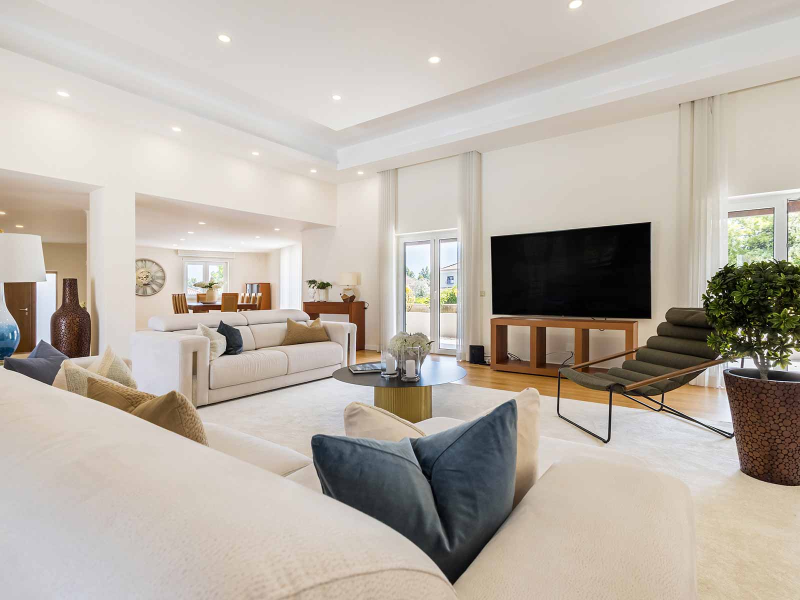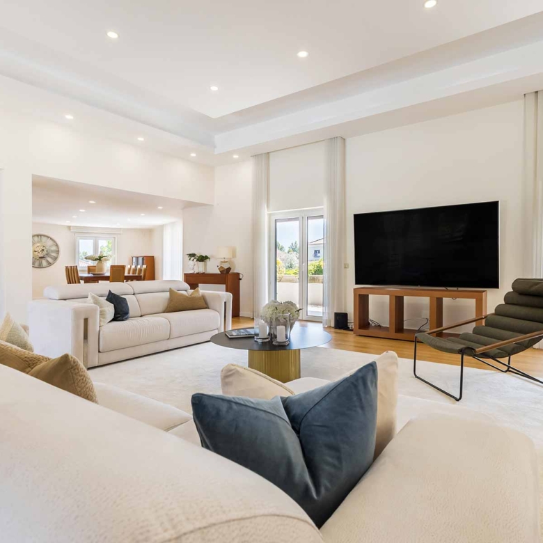 5-bedroom villa with 605 m² of gross construction area, featuring a garden, swimming pool and garage for two vehicles, set on a 1,779 m² plot located in Quinta da Beloura, Sintra.The villa is spread over two floors. On the entrance floor, there is a hall that gives access to the common rooms in an open plan layout, where there are three distinct areas: living room, dining room and games room. It features a spacious equipped kitchen with dining area, pantry and laundry, an office and a guest bathroom. On this same floor, there are three en-suite bedrooms, one with a walk-in closet, a gym, and access to the garage. On the upper floor, there are two en-suite bedrooms, one of which consists of a living room, bathroom and two separate walk-in closets. The exterior features a 102 m² leisure area with a swimming pool, covered balcony, porch and children’s playground.In Quinta da Beloura, you can find all kinds of shops and services, green and leisure areas, lakes, and also a golf course, the Beloura Tennis Academy, and the Holmes Place gym.Located in a privileged area, 2 minutes driving distance from the International Schools The American School in Portugal (TASIS) and Carlucci American International School of Lisbon (CAISL). In Quinta da Beloura, you can find all types of commerce and services, green and leisure areas, lakes, and also a golf course, the Beloura Tennis Academy, and the Holmes Place gym. 2 minutes from El Corte Inglés in Beloura, and 10 minutes from the main shopping centers CascaiShopping and Alegro Sintra. Easy access to IC19, A16 and just over 5 minutes from access to A5. A few minutes from the historic center of Sintra and 20 minutes from Lisbon and Humberto Delgado Airport.