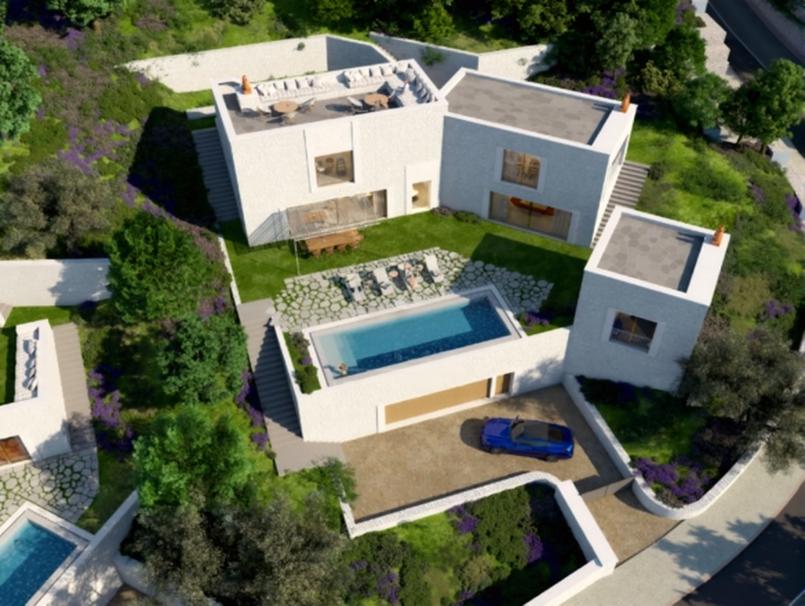 New, detached villa, turnkey project, with 713sqm of gross area, garden, swimming pool and garage for several cars with electric charging points, inserted in the ”Alcedo Villas at Ombria” complex of villas.