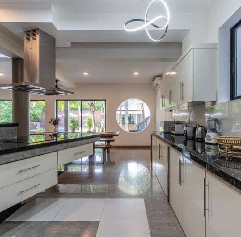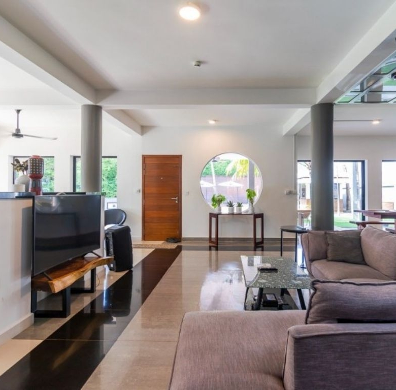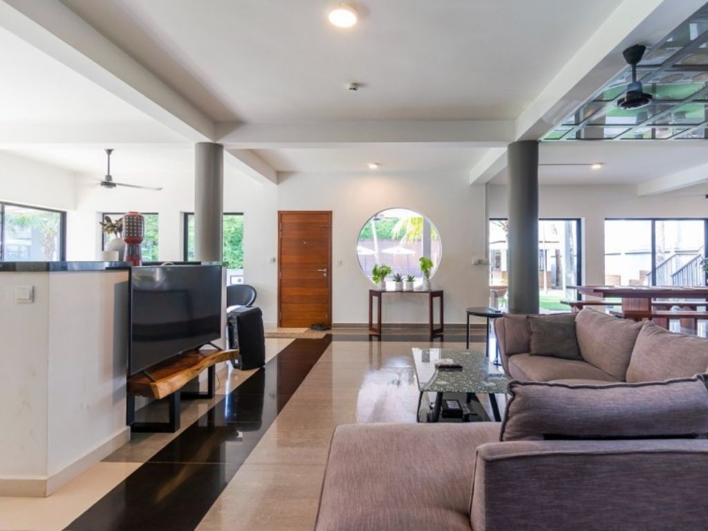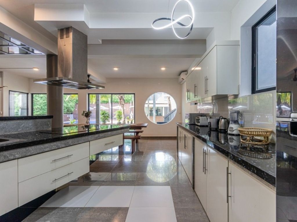 This is a rare opportunity to acquire this luxury Siem Reap villa, a six-bedroom residence with a private swimming pool and plenty of extra land area for additional construction or commercial development. Surrounding views of tropical greenery dominate the outside, while the main villa features spacious halls with its open-floor living area, fully functional kitchen with granite countertops, and generous pantry space. All bedrooms are air-conditioned and fitted with en suite bathrooms, with three (3) of the rooms having access to the covered 42-sqm. balcony. Plenty of floor-to-ceiling windows provide optimum ventilation and copious amounts of sunlight throughout the villa. Moreover, the property includes a fully self-contained home for staff to live in, including a kitchen, lounge, bedroom, and bathroom. Built to last and ensure easy maintenance, this grand villa is sure to be a memorable home away from home in this quiet and popular Siem Reap neighborhood. The land is also a corner block, with 40 meters of street frontage along two (2) major roads, thus making it a prime location that will only grow in value over the next five (5) years.