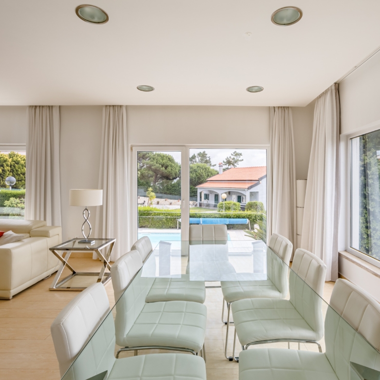 T6 duplex villa with 442 sqm of gross construction area, garden, private swimming pool and garage for two cars in Nadadouro with views of the Óbidos Lagoon, Caldas da Rainha.The T6 duplex villa has a basement and is equipped with a heat pump for heating domestic water and underfloor heating, located in Nadadouro in a very quiet neighborhood just meters from the Óbidos Lagoon.It has a total of 6 bedrooms, 3 of which are en-suite plus two additional bathrooms, a living and dining room with access to the terrace, garden and private pool where you can enjoy views of the Óbidos Lagoon, kitchen, laundry room, upper floor terrace with exceptional views and a basement with a games room, gym, garage for two cars, and another bathroom supporting the gym and games room.On the ground floor there is the living and dining room, kitchen, laundry room, one en-suite bedroom and 2 bedrooms with a shared bathroom. On the 1st floor there are 2 en-suite bedrooms and one bedroom with a shared bathroom, all bedrooms with ample storage space with walking closets, and access to a terrace with exceptional views of the Óbidos Lagoon and the entire surroundings of the house. In the basement there is a TV and games room, a gym, a guest bathroom, a storage room, a utility room and a garage for two cars.Caldas da Rainha, a city well known for its thermal waters, handicrafts and ceramic industry, notably the Bordalo Pinheiro brand, served by Public and Private Hospitals, Public Schools and the Rainha D. Leonor Private College and a campus of the Polytechnic Institute of Leiria.Located just 450m from the Óbidos Lagoon, an ideal place to enjoy long walks by the Lagoon to Foz do Arelho beach. Nadadouro is by the shores of the Lagoon, just 4km from Foz do Arelho, 7km from the city center of Caldas da Rainha, and 1 hour 15 minutes from Lisbon.