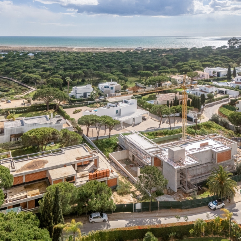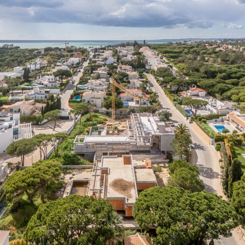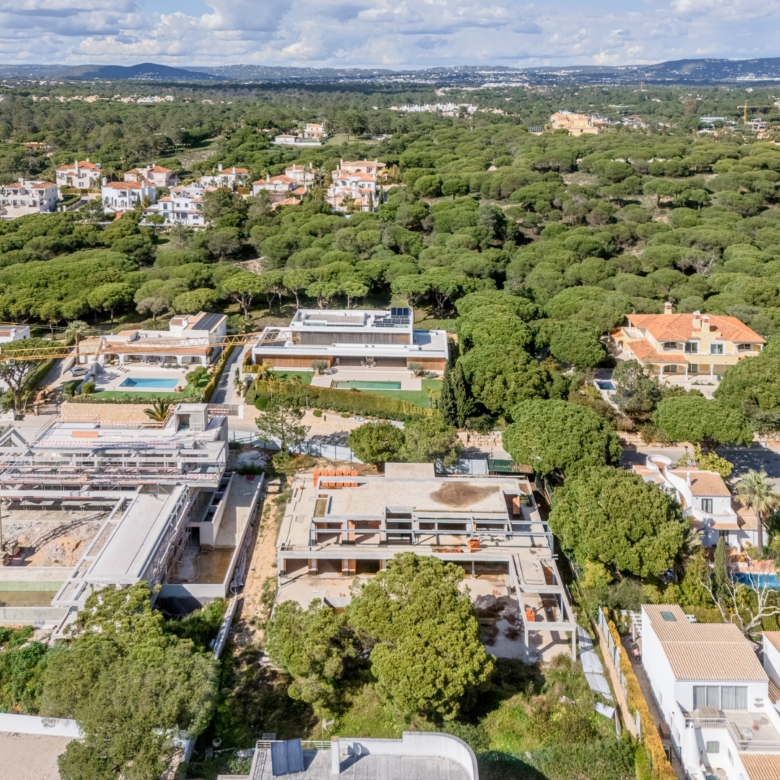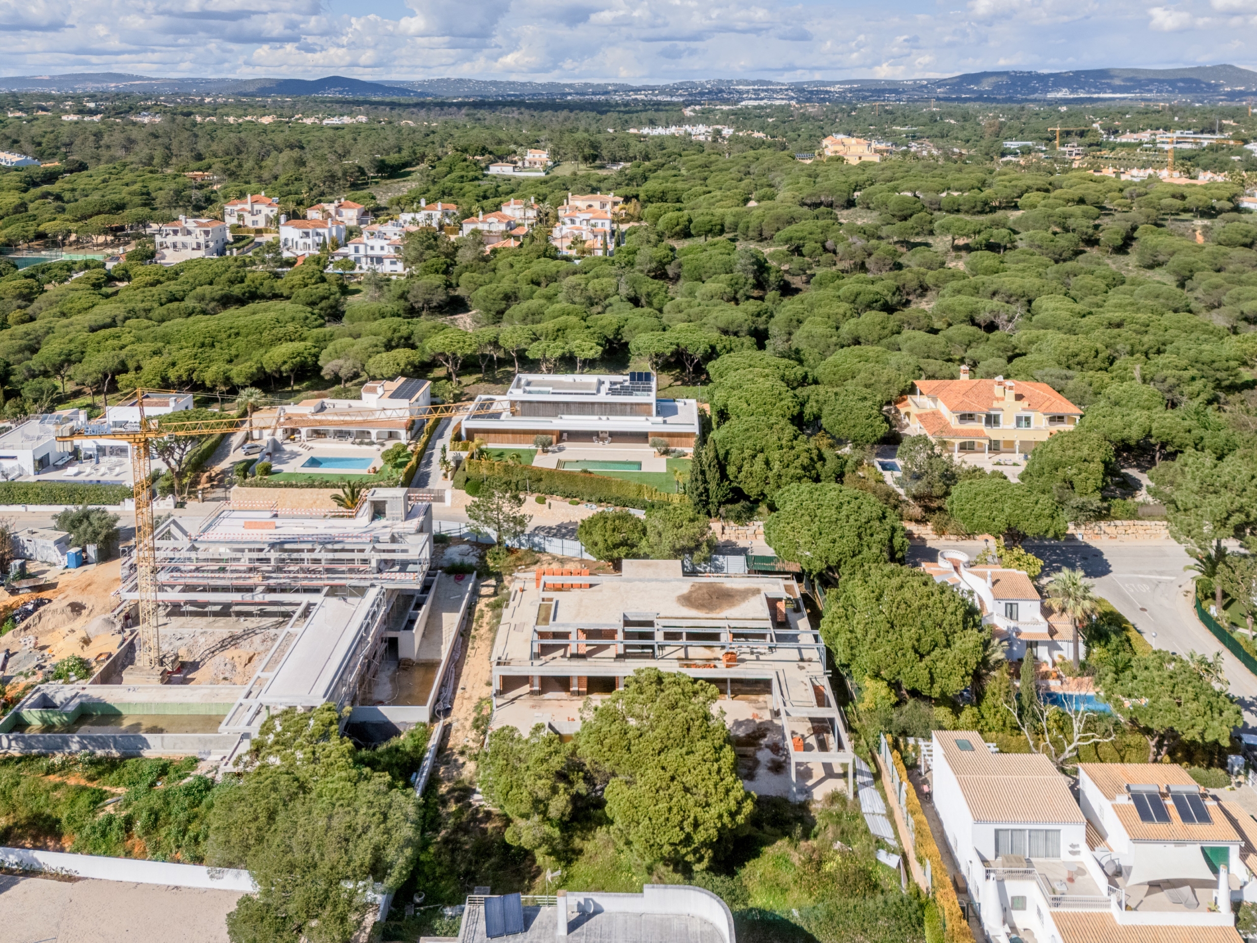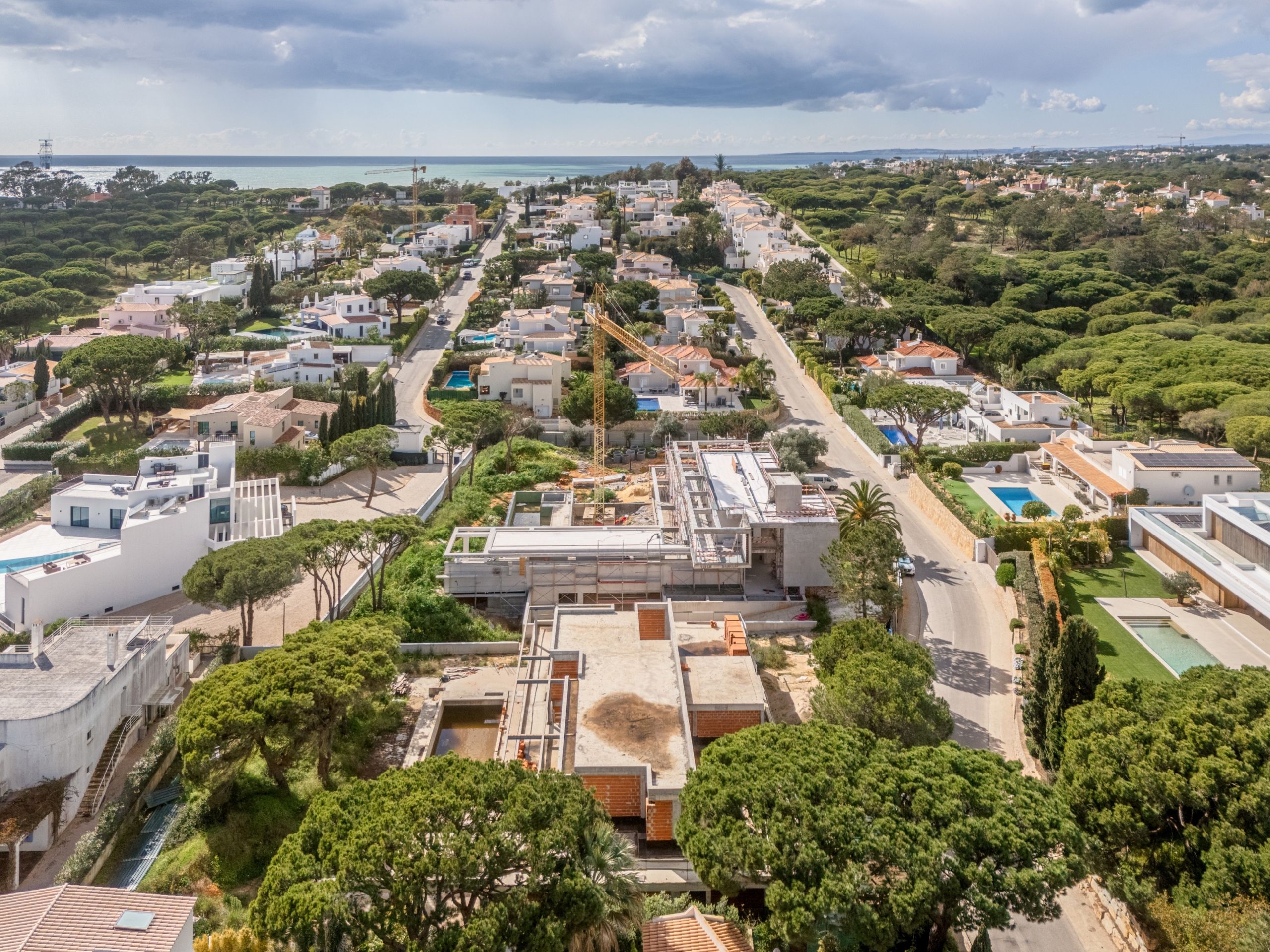 T6 +2 villa with 1,317 sqm of gross construction area, featuring outdoor lounge areas, infinity pool, and gardens, situated on a 3,341 sqm plot, just 150 meters from the boardwalks and Ria Formosa, and a 10-minute walking distance from the beach, located in Quinta das Salinas (adjacent to Quinta do Lago), Almancil, Algarve.The villa, with its modern style and contemporary design, stands out for the quality of materials and finishes, offering a perfect harmony between interior and exterior, with breathtaking views of the Ria Formosa Natural Park and the sea. The villa is divided into four floors with an elevator: basement, ground floor, first floor, and roof terrace. On the ground floor, we find a spacious social area with living room, dining room, and modern kitchen with island and Miele appliances. The ground floor windows, of minimalist type, extend from floor to ceiling and open completely with a sliding system, perfectly integrating indoor and outdoor spaces. The first floor houses the main bedrooms, all en-suite, with built-in wardrobes from floor to ceiling in white lacquer and linen interior. The interior doors, also in white lacquer, extend from floor to ceiling and have a pivot system.The roof terrace offers an exceptional leisure area with hot tub/pool, sunbeds, bar, and lounge, providing magnificent views over the Ria Formosa Natural Park and the sea.In the basement, we find the 7th bedroom, a games/TV room, gym, and spa area with sauna, pool, and relaxation area. All these spaces have direct access to the exterior.Externally, the villa features a 21-meter long infinity pool, with a shallow area for sunbeds within the water level. There is also a sunken lounge with fireplace integrated into the pool, barbecue area, dining area, and outdoor lounge with TV point.The property also includes a padel court and well-maintained gardens. The external parking accommodates 5 cars in two different areas within the plot, in addition to internal garage for 4 cars in the basement. The finishes include: Marazzi porcelain flooring 1.20m x 1.20m in all internal and external areas, Marazzi porcelain bathroom cladding 2.70m x 1.2m, Villeroy & Boch sanitary equipment, GESSI taps, underfloor heating throughout the villa, including the basement, built-in air conditioning throughout the villa, mechanical ventilation system (MVS) for air renewal, home automation system, windows with special class A glass and external blinds with thin vertical tubes.The villa is under construction, with completion expected by September 2025, and may be ready by the summer of the same year.It is also just 10 minutes away from Quinta do Lago and Almancil, where an international school is located. The property is 25 minutes from Faro International Airport and 2 hours and 30 minutes from Lisbon International Airport.