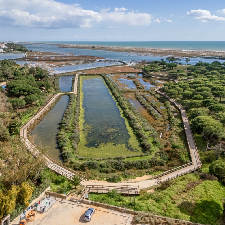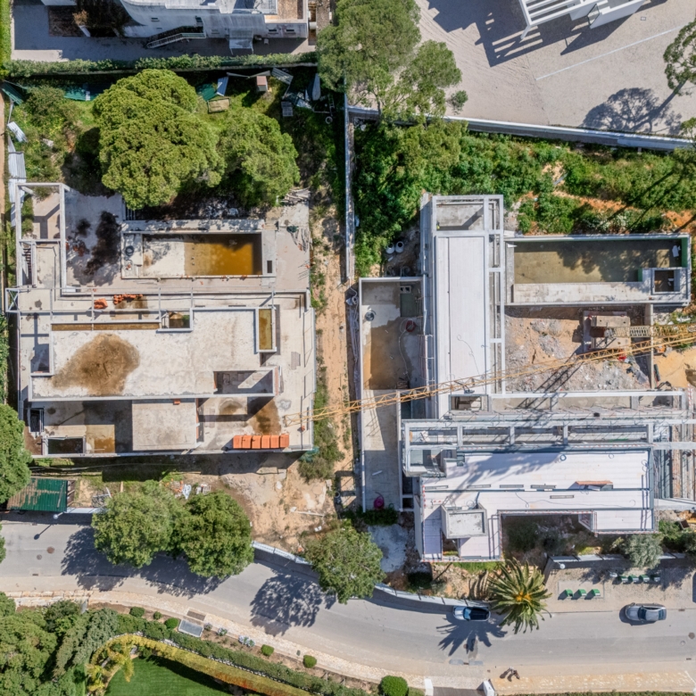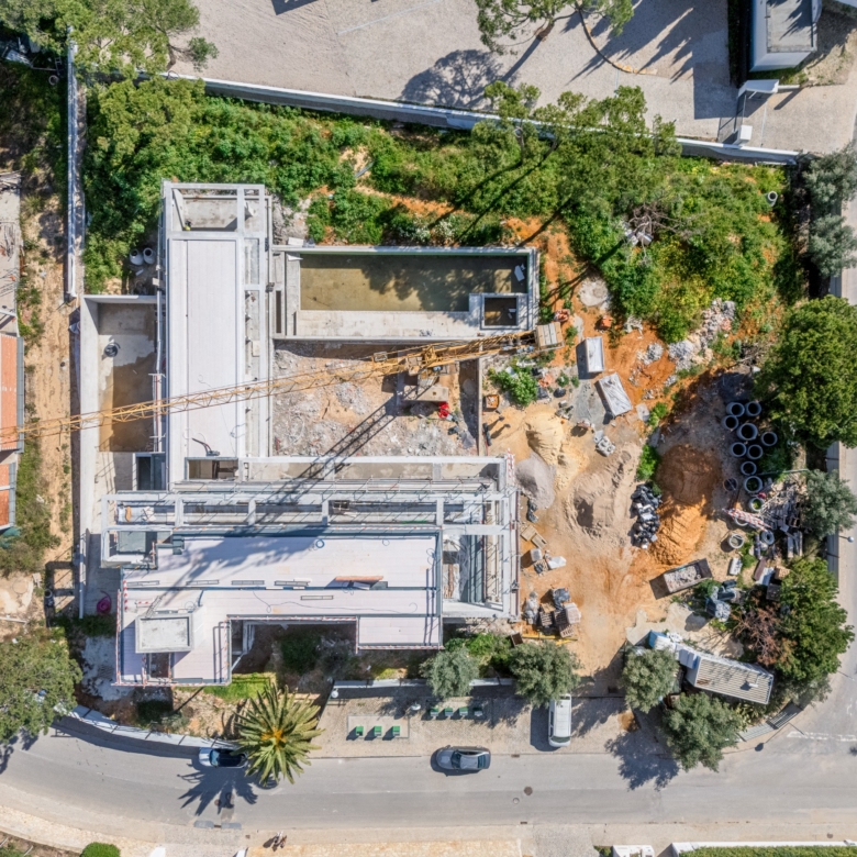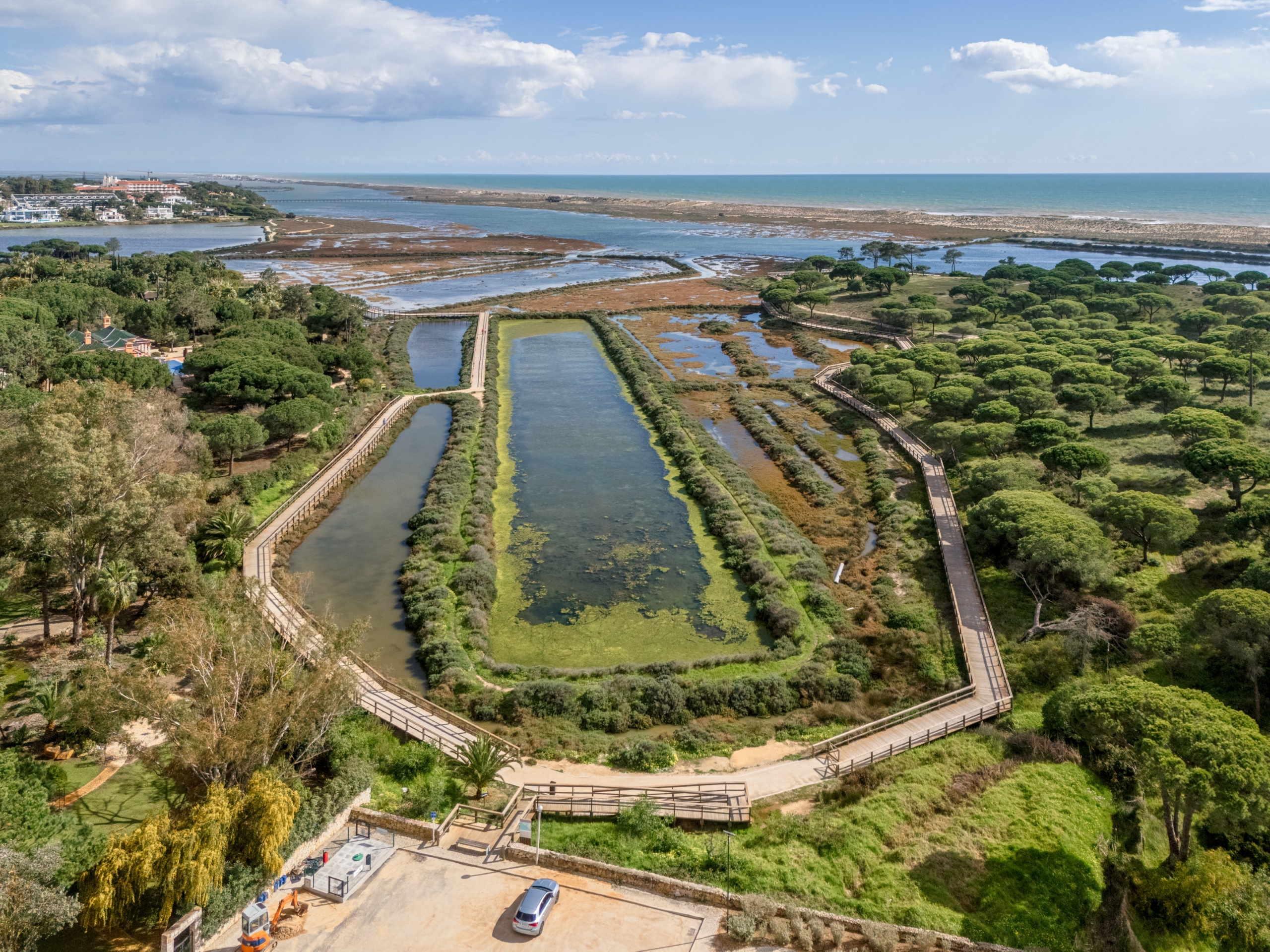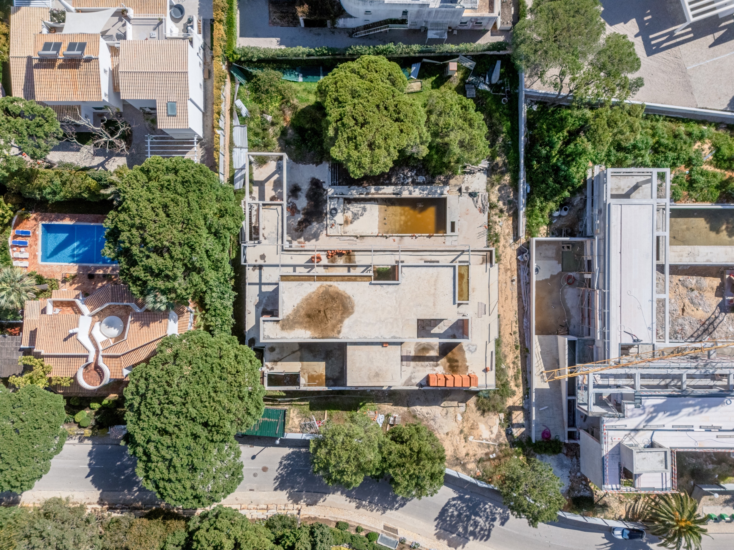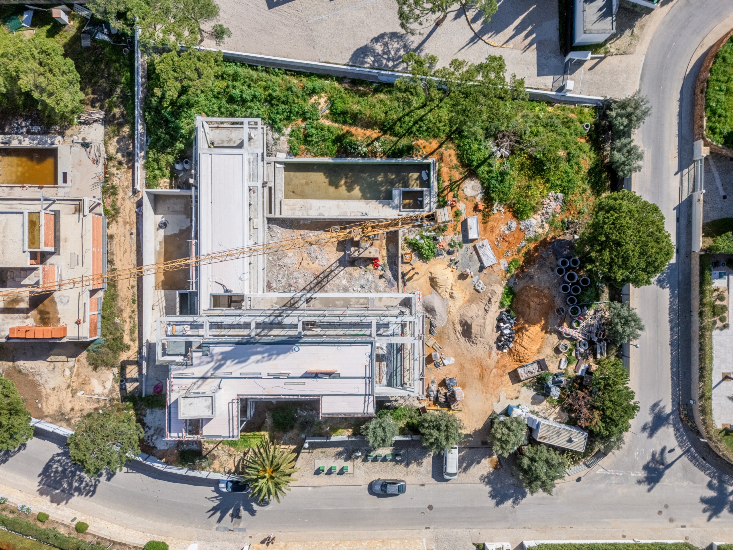 T6 +2 villa with 1,317 sqm of gross construction area, featuring outdoor lounge areas, infinity pool, and gardens, situated on a 3,341 sqm plot, just 150 meters from the boardwalks and Ria Formosa, and a 10-minute walking distance from the beach, located in Quinta das Salinas (adjacent to Quinta do Lago), Almancil, Algarve.The villa, with its modern style and contemporary design, stands out for the quality of materials and finishes, offering a perfect harmony between interior and exterior, with breathtaking views of the Ria Formosa Natural Park and the sea. The villa is divided into four floors with an elevator: basement, ground floor, first floor, and roof terrace. On the ground floor, we find a spacious social area with living room, dining room, and modern kitchen with island and Miele appliances. The ground floor windows, of minimalist type, extend from floor to ceiling and open completely with a sliding system, perfectly integrating indoor and outdoor spaces. The first floor houses the main bedrooms, all en-suite, with built-in wardrobes from floor to ceiling in white lacquer and linen interior. The interior doors, also in white lacquer, extend from floor to ceiling and have a pivot system.The roof terrace offers an exceptional leisure area with hot tub/pool, sunbeds, bar, and lounge, providing magnificent views over the Ria Formosa Natural Park and the sea.In the basement, we find the 7th bedroom, a games/TV room, gym, and spa area with sauna, pool, and relaxation area. All these spaces have direct access to the exterior.Externally, the villa features a 21-meter long infinity pool, with a shallow area for sunbeds within the water level. There is also a sunken lounge with fireplace integrated into the pool, barbecue area, dining area, and outdoor lounge with TV point.The property also includes a padel court and well-maintained gardens. The external parking accommodates 5 cars in two different areas within the plot, in addition to internal garage for 4 cars in the basement. The finishes include: Marazzi porcelain flooring 1.20m x 1.20m in all internal and external areas, Marazzi porcelain bathroom cladding 2.70m x 1.2m, Villeroy & Boch sanitary equipment, GESSI taps, underfloor heating throughout the villa, including the basement, built-in air conditioning throughout the villa, mechanical ventilation system (MVS) for air renewal, home automation system, windows with special class A glass and external blinds with thin vertical tubes.The villa is under construction, with completion expected by September 2025, and may be ready by the summer of the same year.It is also just 10 minutes away from Quinta do Lago and Almancil, where an international school is located. The property is 25 minutes from Faro International Airport and 2 hours and 30 minutes from Lisbon International Airport.