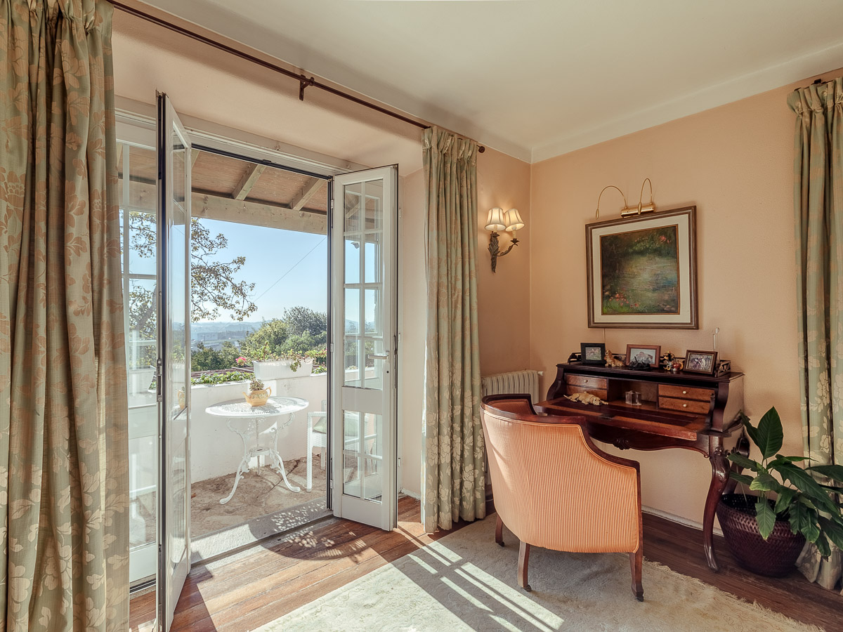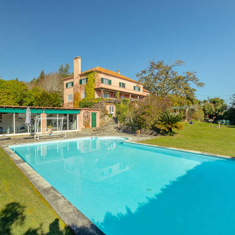 Property with 7165 sqm of land with a 6-bedroom villa, 567 sqm construction gross area and swimming pool, in São Pedro de Sintra. In addition to this main house, there is also an 80 sqm apartment and a small 64 sqm house. All the houses were renovated, in terms of windows and shutters, paintings, kitchen, bathrooms, electricity and plumbing. They comprise central heating, boiler, solar panels, and heated swimming pool. The main house, with lots of charm, is spread over three floors. Ground floor: three living rooms, a dining room, a kitchen, a suite, two bathrooms, a pantry and a laundry room. Some rooms have access to a terrace and a view of the garden. First floor: a master suite with a full bathroom and a closet, a suite and three bedrooms with a full bathroom. Floor -1: two rooms with exit to the garden and the office. The apartment, near the main house, has an independent entrance, a suite, a bedroom, a living room, a kitchen, a full bathroom, and a private patio. The small villa has a bedroom, a living and dining room combo, a bathroom, and a private terrace. In the well-kept garden, there are fruit trees, a porch, a pool house, a heated swimming pool with a gym, a bathroom, an infrared sauna, and an artesian hole for watering the garden and for the swimming pool.The villa is near the Colégio de S. José, in Ramalhão, 8-minute driving distance from TASIS International Schools (the American School in Portugal) and CAISL (Carlucci American International School of Lisbon). 8 minutes from Corte Inglés da Beloura and the main shopping centres CascaiShopping, Alegro Sintra, Happen Shopping Centre and Bela Vista Shopping Centre.Easy access to IC19, A16, less than 10 minutes from the access to A5, and 30 minutes from Lisbon and Humberto Delgado Airport.