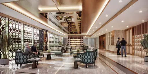 • Luxury Amenities:Includes a 45-meter swimming pool, full gym, sauna, steam rooms, rooftop garden, co-working and co-dining spaces.