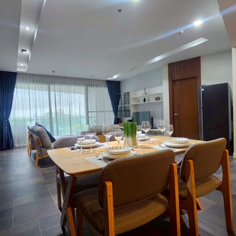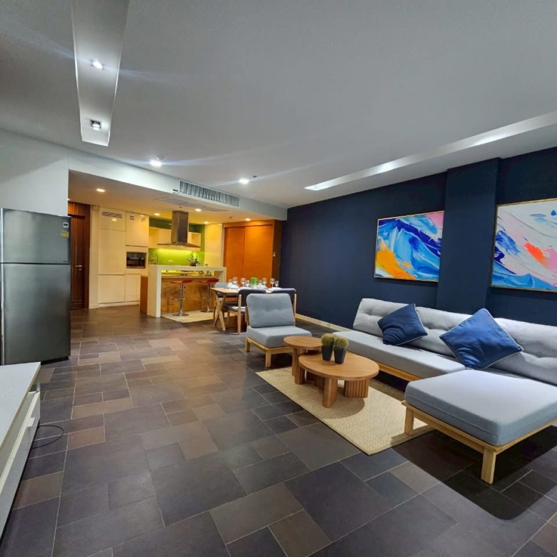 One of Pattaya’s most prestigious low-rise beachfront developments, located in the peaceful Naklua area. Completed in 2009, This spacious 1-bedroom beachfront residence offers approximately 100 sqm of refined living space with panoramic sea views from the living room and balcony. The open-plan layout blends the kitchen, dining, and living area seamlessly, maximizing both natural light and airflow.