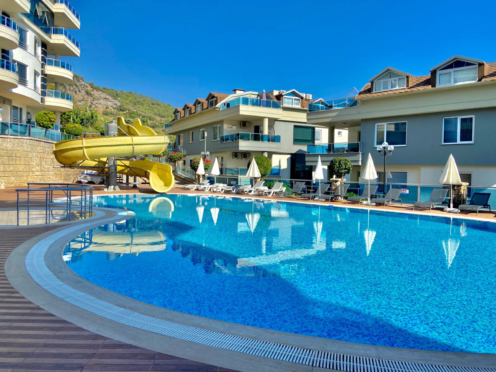 Located in Saray Mahallesi, one of Alanya’s most central and desirable neighborhoods, this fully furnished apartment for sale in Alanya is situated just400 meters from the sea—a short 5-minute walk to the world-famous Cleopatra Beach. Part of the modern Blue Bay Residence, the home offers both comfort and investment potential in a complex known for its extensive on-site amenities and high rental appeal.