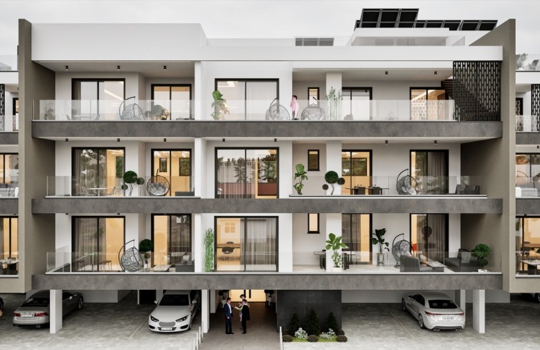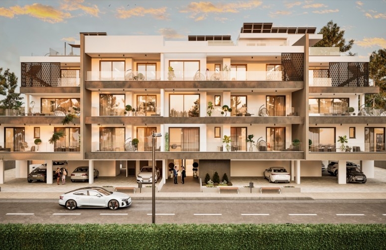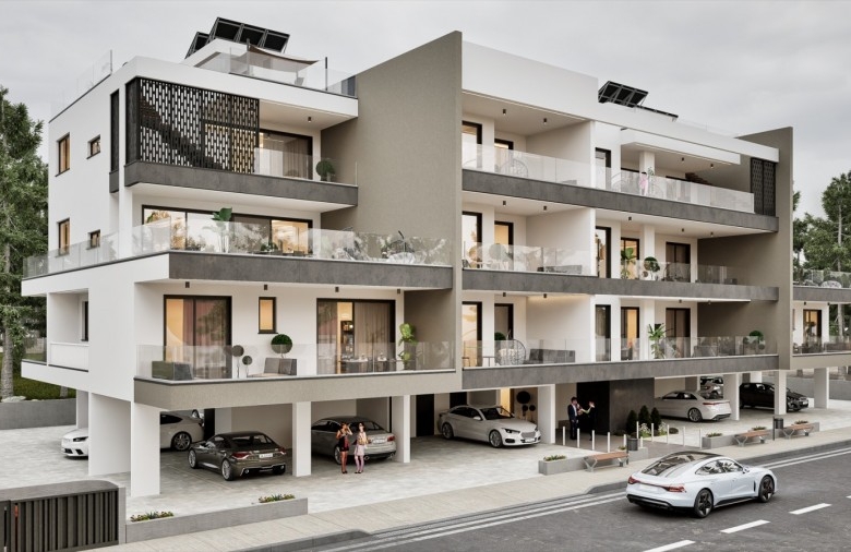This contemporary residential project in a new, quiet neighborhood of Aradippou offers thoughtfully designed 1- and 2-bedroom apartments, ideal for modern living. Surrounded by green parks and just minutes from the Metropolis Mall, the development enjoys an excellent location with easy access to Nicosia and Limassol highways, Larnaka city center, the beach (5km), and the international airport (11km). Each apartment boasts energy efficiency (Certificate A), granite kitchen worktops, ensuite walk-in showers, large verandas, and high-quality finishes including thermal aluminum double-glazed windows, marble staircases, and glass veranda railings. Residents benefit from video intercom systems, covered parking, individual storage units, and provisions for air conditioning and electric car chargers, while penthouses feature private roof gardens.
