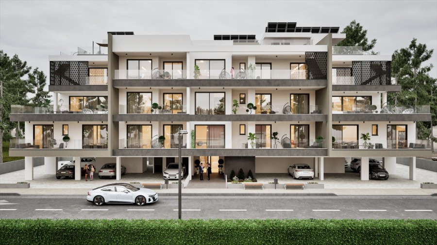 This contemporary residential project in a new, quiet neighborhood of Aradippou offers thoughtfully designed 1- and 2-bedroom apartments, ideal for modern living. Surrounded by green parks and just minutes from the Metropolis Mall, the development enjoys an excellent location with easy access to Nicosia and Limassol highways, Larnaka city center, the beach (5km), and the international airport (11km). Each apartment boasts energy efficiency (Certificate A), granite kitchen worktops, ensuite walk-in showers, large verandas, and high-quality finishes including thermal aluminum double-glazed windows, marble staircases, and glass veranda railings. Residents benefit from video intercom systems, covered parking, individual storage units, and provisions for air conditioning and electric car chargers, while penthouses feature private roof gardens.