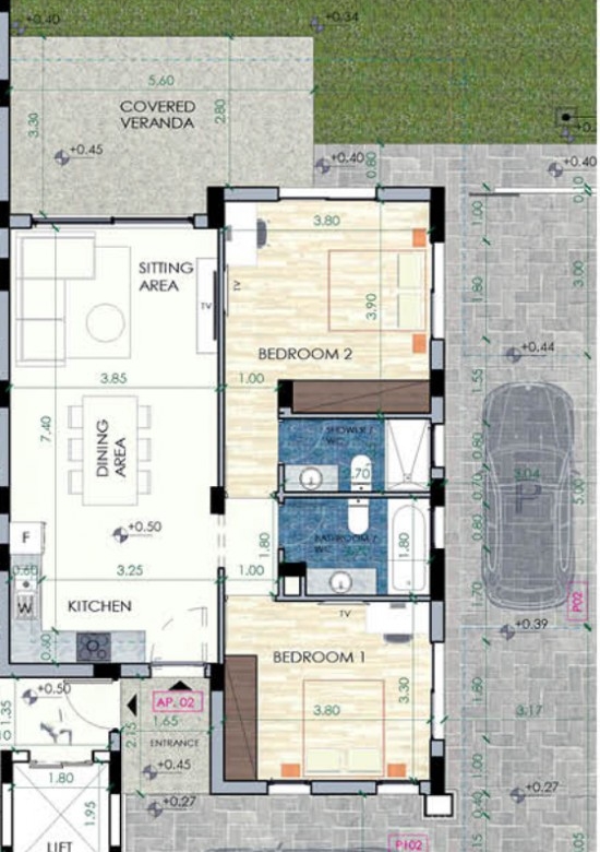 Exclusive project consisting of only four spacious apartments. Two levels only, ground floor and first level. Privacy, amazing architecture, modern designs and great location are just some elements that belong to this project. Within a thriving community with many amenities at a short distance. This unit has a garden area of 79 square meters. This unit has a garden of 104 square meters.