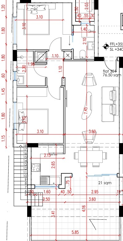 Comprising of 9 private apartments, securing a comfort living for the residents. Each floor has two 2 bed room(2 bathroom) and one 3 bedroom (2.5 bathrooms) apartments, with elegant finishes and high end materials. All 3 apartments on the 3rd floor are offering a generous rooftop area laying in a 50m2 total surface, privately accessed by the owners of each apartment. The project is located just a few minutes walk to the new Metropolis Mall and just a few steps away from supermarkets (LIDL), cafes and other major services. The apartments are facing an open field, with city views and the beautiful greenery of the residential area and privacy is attained by the cul-de-sac that the plot pro vides to the residents. There is easy access to all cities as it is located in a central location where the access to the high-way (Nicosia/Limassol/Famagusta) is in close reach.
