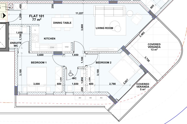 The project boasts sixteen apartments two bedroom & two bathroom apartments – all with spacious and contemporary living areas. There are two apartments per storey – ensuring optimum privacy for potential buyers. The eight floor apartments benefit from individual private and luxury roof-gardens with amazing views of the lovely Neighborhood. Each apartment has one parking bay and a storage room on the ground level.