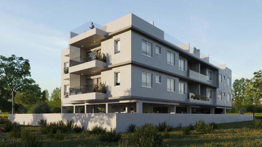 This contemporary residential development is located in Oroklini, Larnaca, just 2 kilometers from the beach and 8 kilometers from the city center. Comprising 14 apartments—eight one-bedroom and six two-bedroom units—the complex offers modern living spaces with open-plan kitchens, cozy bedrooms, and spacious verandas. Select second-floor apartments feature private roof gardens, providing additional outdoor space. Each unit includes a covered parking space and a storage room on the ground floor. The building is equipped with an elevator and boasts high-quality finishes such as marble flooring in the lobby, granite kitchen countertops, and double-glazed thermal aluminum windows. With an energy efficiency rating of A+, the project is designed for comfortable and sustainable living. Construction is expected to begin in early 2025, with completion anticipated by summer 2026.