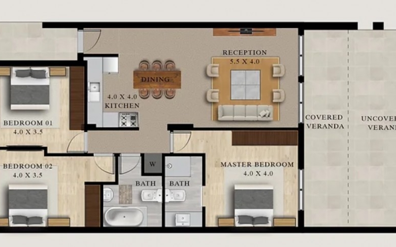 A wide range of 1 to 3-bedroom units is available including Garden apartments with a private jacuzzi and a rooftop duplex.