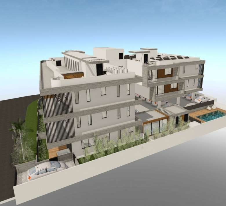 This project is a multi-residential development designed with a focus on contemporary living, functionality, and shared luxury amenities. It consists of multiple levels, including a ground floor, two upper residential floors, and a rooftop garden area. The development includes a variety of apartment units ranging in size, with thoughtfully designed interiors that feature living rooms, dining areas, kitchens, bedrooms (including master bedrooms), and bathrooms. The ground floor incorporates communal facilities such as a gym, a pool with mechanical support areas, and designated guest zones, along with garden spaces for ground-floor units. All residential floors are served by an elevator and include covered verandas for each flat. The rooftop is designed with private garden areas for select units, enhancing outdoor living with panoramic views and additional relaxation space. The project also integrates accessible design features, dedicated parking (including disabled spaces), and high-quality construction materials, including reinforced concrete finishes, thermal-insulated aluminum windows, laminated glass balustrades, and wooden decking.